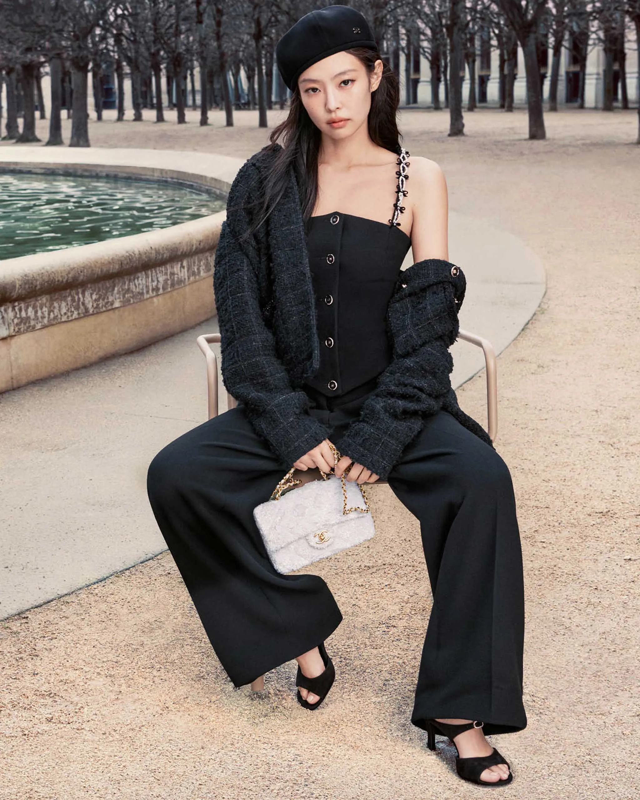 In the gardens of the Palais Royal in Paris, South Korean singer and actor Jennie is dressed in a large navy coat, white T-shirt, and jeans for the Chanel fall-winter 2025/26 pre-collection campaign. Earlier, in a Paris apartment, she blew kisses to the Vogue cameras in a light blue tweed jacket and skirt and then posed defiantly in front of the palace’s fountain, wearing a beret and a tweed jacket slung over one shoulder. A series of other very Parisian, and very Jennie, looks followed, each of them emblematic in their own way of the Chanel pre-collection, which, in a nutshell, “was created by Chanel using Jennie, the house’s ambassador, and the protagonists of American romantic comedies of the 1990s as muses.”