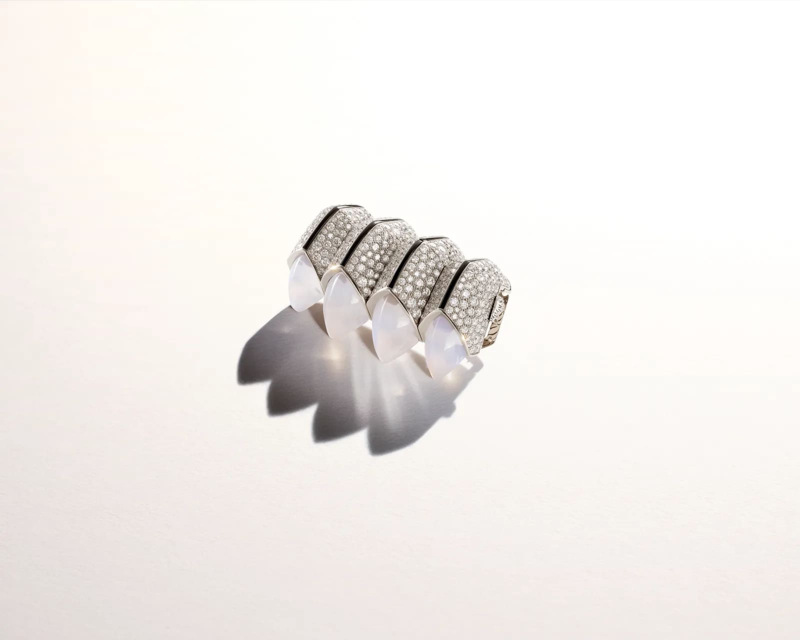 “Wearing time in a different way has been a constant preoccupation at Cartier,” adds Rainero, referring to the many brooch watches in Cartier’s rich archive. Across history, they have been worn on the shoulders of gowns, to emphasise the décolleté, pinned on skirts and nestled in the hair. Princess Diana and Audrey Hepburn also experimented with ways to wear the wristwatch. Princess Diana’s Saudi Sapphire choker, which she also wore as a headband, was, in fact, pieced together using an oval sapphire that was cut from a ring and placed in a watch’s diamond frame. In the hectic party scene in Breakfast at Tiffany’s, the audience watches as a party goer bends down to check the time on a watch that is fastened to a slender ankle.