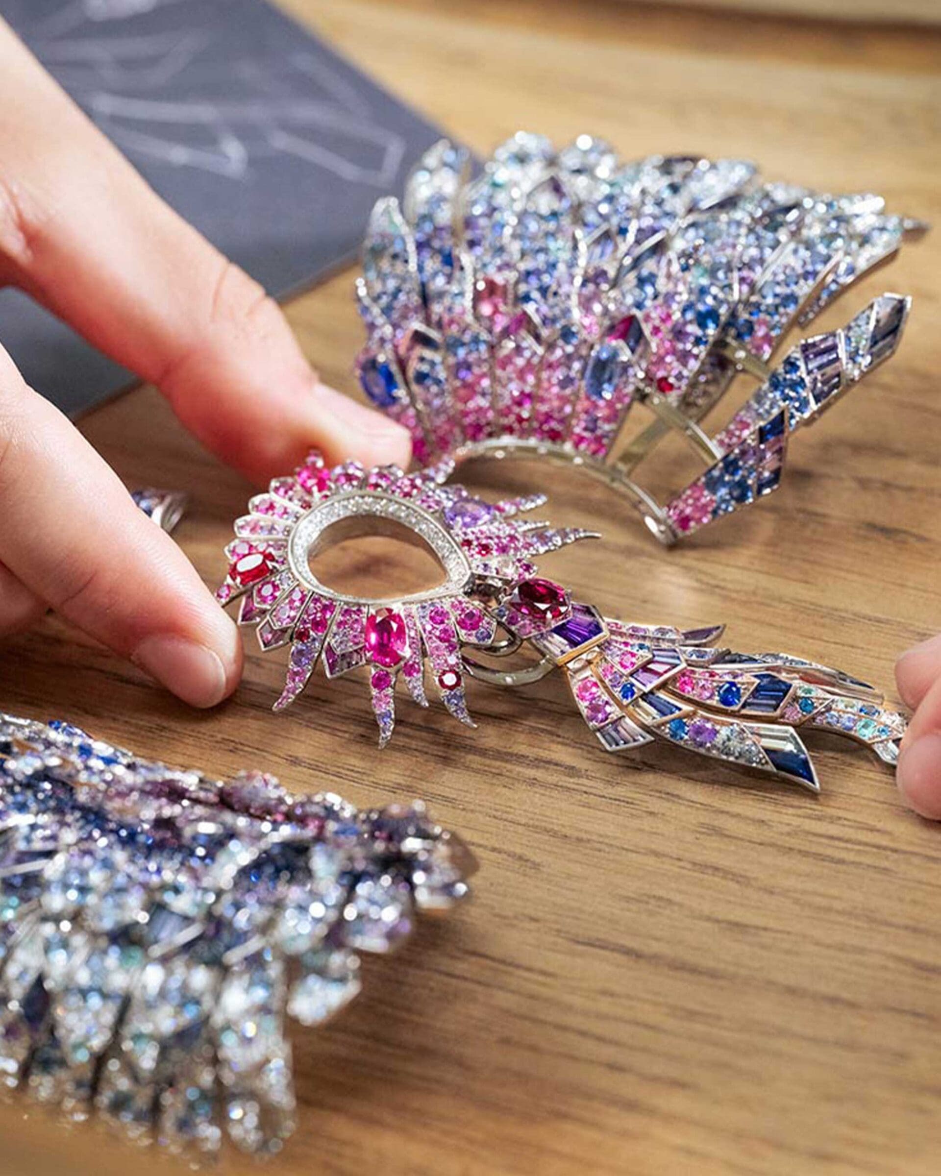 FBS: When you have to choose the stones for these kinds of pieces, it doesn’t matter if it’s the Phoenix [design] or the Fireworks or the other. When you have to choose the jewelry, it’s very tough find the right gradient of the color, and sometimes we are very picky. This was the problem. Sometimes we decided to change the stones because we don’t find the right size, or we don’t find the right colors.