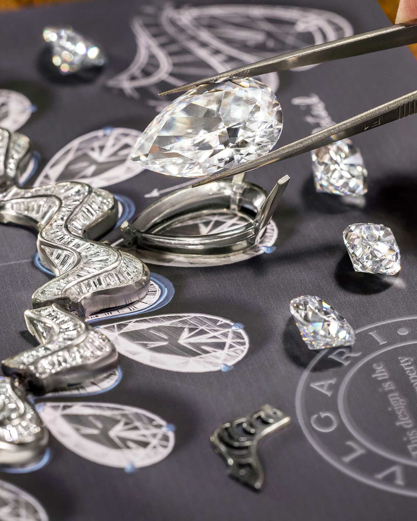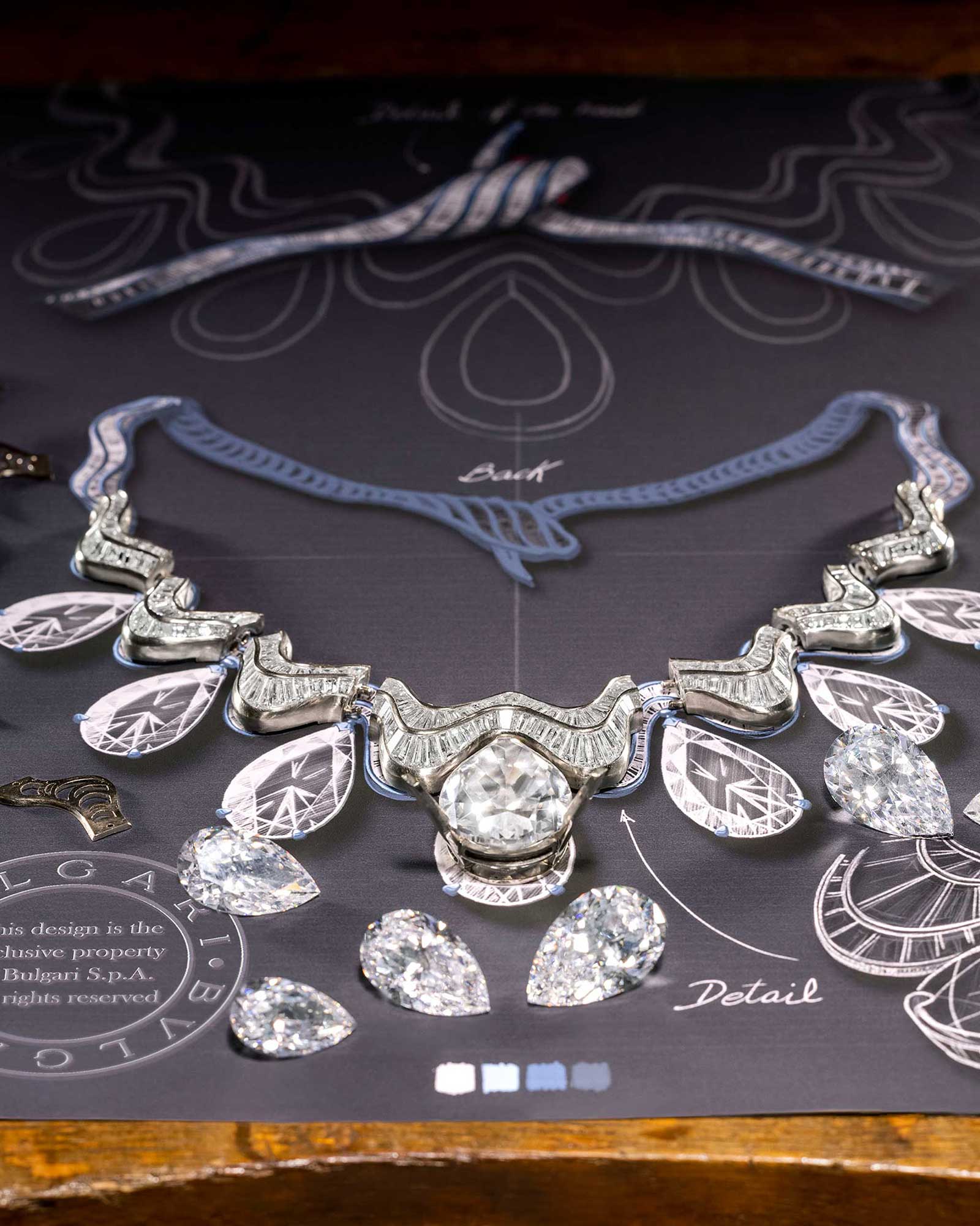 Mauro Di Roberto: Actually, was the uniqueness about it. Because to be able to celebrate it [Bulgari’s 140th anniversary] in a unique way, more than having cut stones out of 140 carats, it’s the fact that for the first time in our history we worked with a rough stone—the rough diamond from the Lesotho mine, which is one of the most important mines certified by the Responsible Jewellery Council and to be able to work with the supplier in recutting. We thought it would be best [for the stones] to be cut both from an aesthetics point of view, guaranteeing, of course, the quality and the carat. And it’s the perfect stone to make flawless, 140 carats.