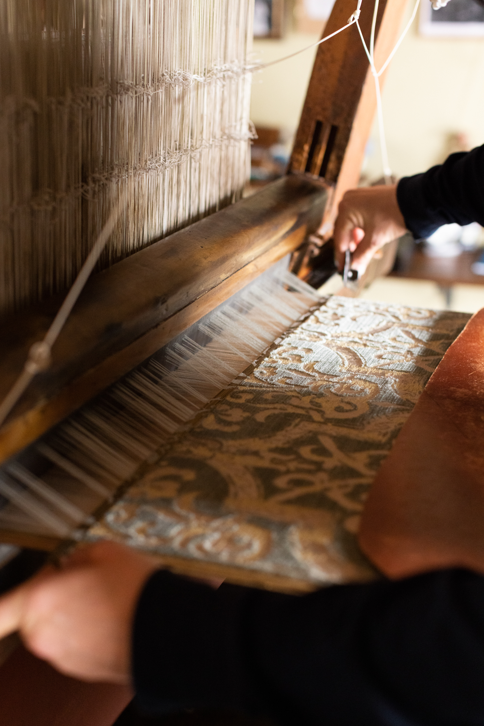 Inside the Palazzo Soranzo Van Axel, different capticating spaces were created to showcase the three universes. A collaboration with Venetian luxury textile company Rubelli, each space was decorated with a fabric with a signature mosaic pattern in different color combinations.