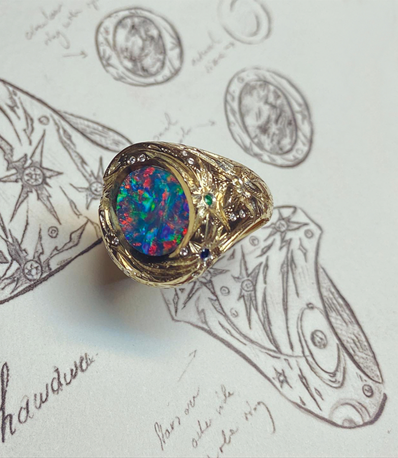 It’s easy to understand Castro’s appeal and his subsequent success. While it must certainly contribute—who wouldn’t want a ring with a ruby-eyed tiger or a miniature galaxy of diamonds—his work is less about the human affinity for bling and all things shiny. It is more about telling stories, crystallizing personal anecdotes through a craft that is slow and considered, touching in its fine intricacies, and ultimately captivating.