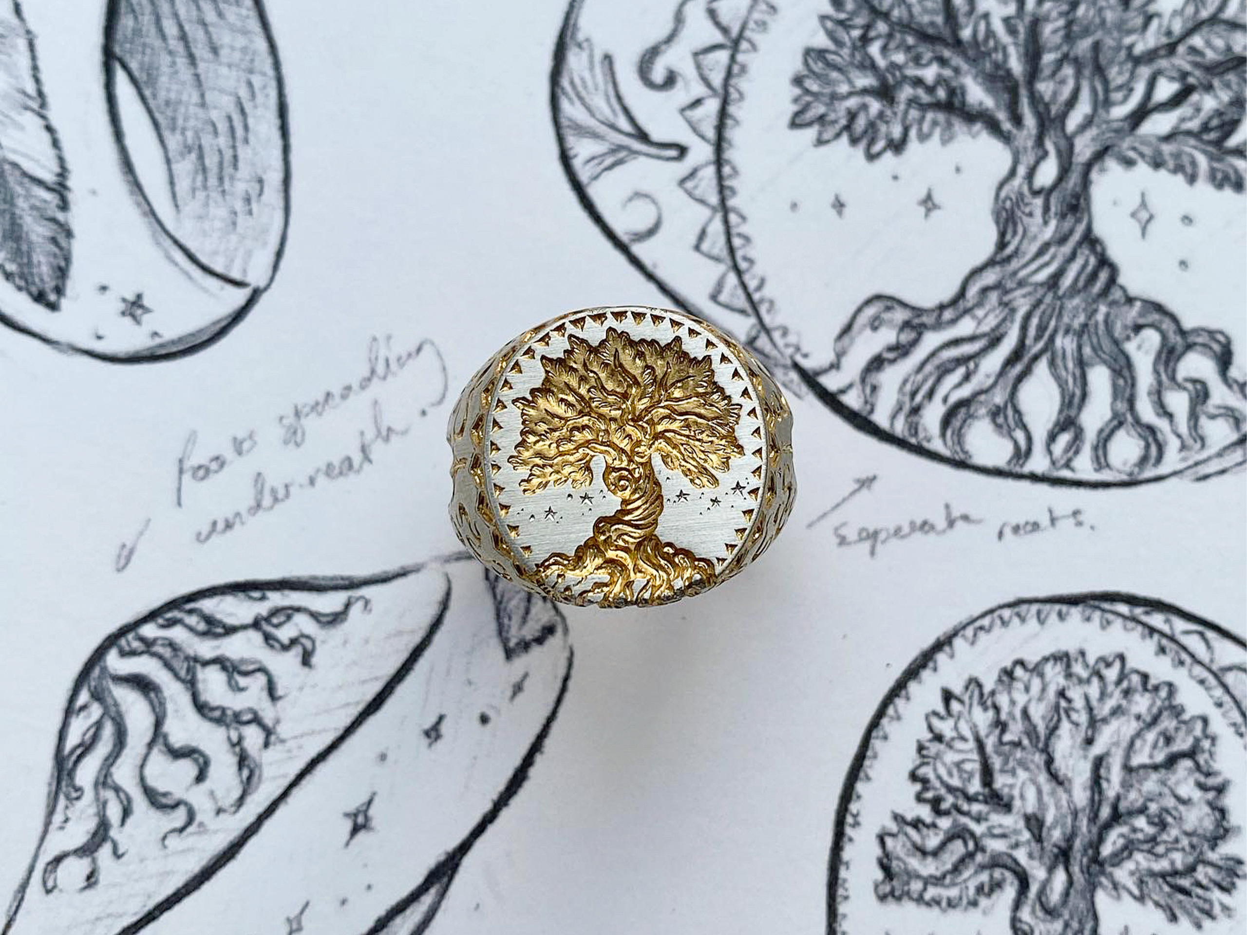He is calm and collected, which makes sense. A Castro Smith piece is painstakingly detailed, carved with minute precisions on such a tiny scale. Each filament on a leaf, individual whisker on a frenzied hare, and wrinkle on a tensed knuckle, all these clearly fleshed out from the few shy millimeters of a signet ring. No nerves, no jittery hands were involved in the making of these. To be a craftsman is to know your body, to respect and care for it. “Of course, tools are made to do the work for you, but at the end of the day, it’s my eyes and my hands,” Castro shares.