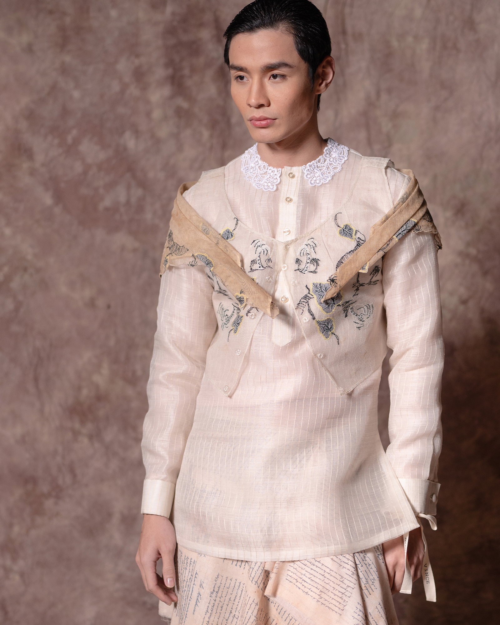 Samson wants to use his platform to showcase and promote Filipino textiles and designs. He took from one of our country’s national heroes to conjure up the collection. “My inspiration began with the work of Jose Rizal and then, over time, evolved into paying tribute to our culture in as many ways I could think of as possible. I wanted to display something distinctly and uniquely Filipino.”