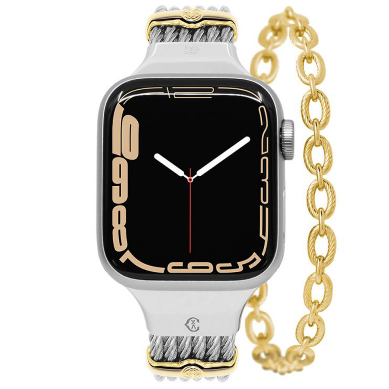 Fashionable bands are a great way to blend your timepiece with the rest of your jewelry. Founded in 1983 by Philippe Charriol, the luxury accessories brand popularized the use of twisted steel cables for their watch bracelets and jewelry. To update its signature design, the brand released a Charriol x Apple Watch, which melds its stainless steel and gold St. Tropez band with the Apple Series 3 through 8. The design is a balanced blend of old and new, resulting in a fresh and unique style for the most fashionable tastes.