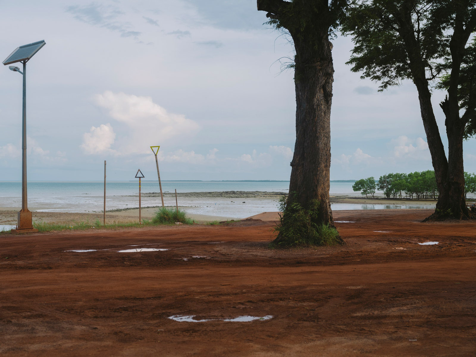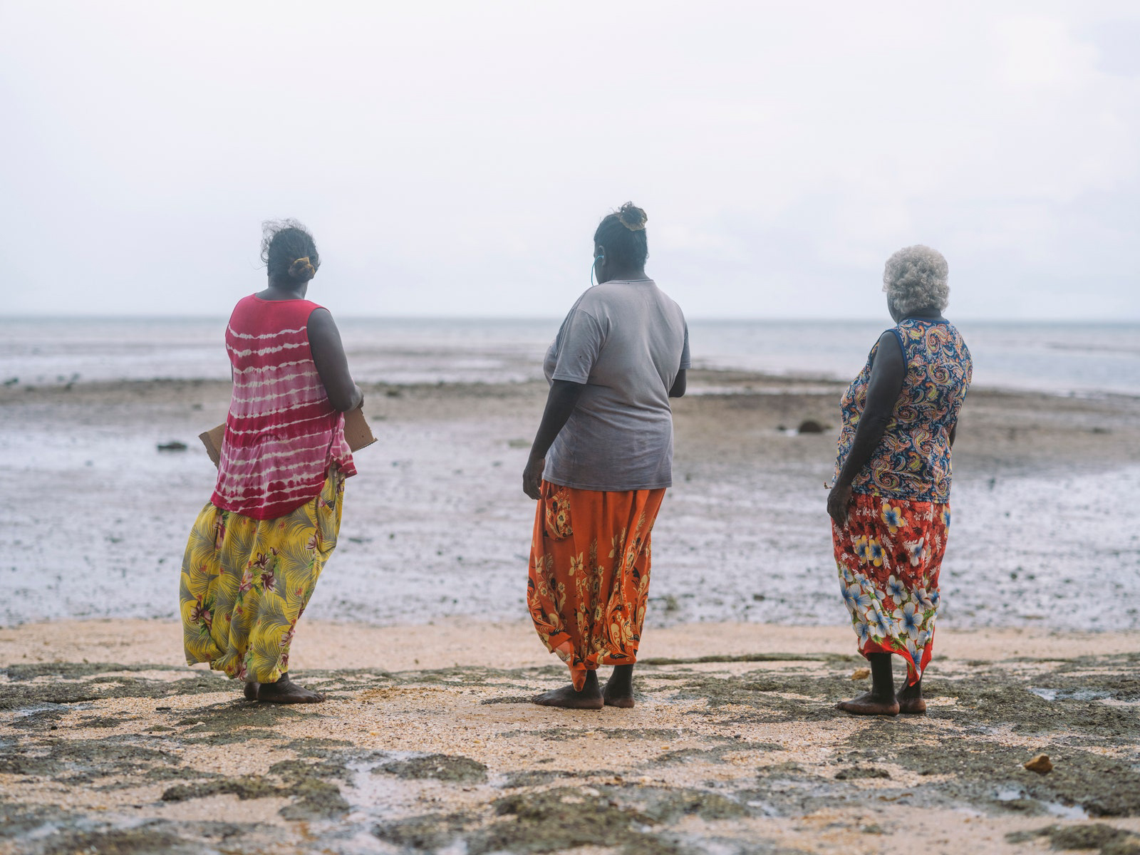It’s a small plane ride from Darwin, in the Northern Territory of Australia, to Milingimbi. A bumpy Air North 12-seater flies into a landscape of oval green islands bordered by snaking blue waters. The soil is red, and amongst the trees I recognize something I’m more familiar with in India: tamarind trees, one of the many symbols of the history of trade and exchange—a centuries-old history, in fact—between the Yolŋu people and Macassan traders of Indonesia. The Yolŋu are the people of North Eastern Arnhem Land, where Milingimbi is located. The geographical or linguistic grouping of Yolŋu (which quite literally means “person”), includes close to 20 languages. While I can’t speak to the colonial impulse to group and classify in order to make sense of other cultures, I’m told Yolŋu is a name used with comfort, although specific clan names might be more appropriate. The cross-cultural integration is evident via references to Allah in ceremonial song and photographs of Yolŋu wrapped in batik print dating back to 1913. A Methodist Mission established itself here in 1923 and continued to effectively “govern” until 1974. Fast forward to February 2023 when photographer Katrin Koenning and I took the main road past the one store and arrived at an old Mission earth-rendered building from the 1930s, now the Milingimbi Arts and Culture Center that sits just back from the beach, our structural focal point for the next few days.
