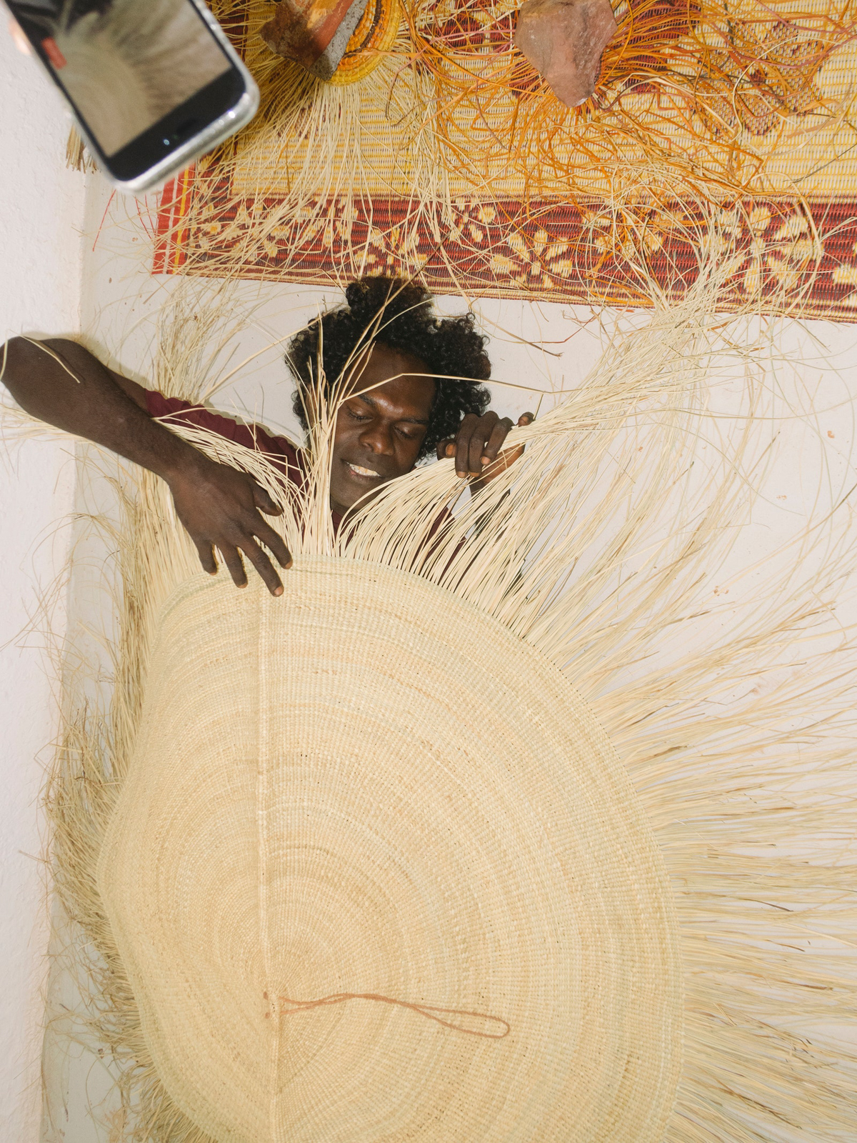 Every woman I spoke with, as they all recounted how they’ve learned—by watching their grandmothers, aunts, sisters, mothers, whether they were five or 16 years old—never spoke about weaving artworks for galleries. They spoke of the survival of their culture. While I lack the academic prerequisites to talk about art, I’ll comfortably assert that the majesty of Bamugora by Susan Balbuŋa undeniably warrants pride of place at any of the world’s finest galleries—by anyone’s exacting standards. What is equally undeniable is the salience of the precious culture and law woven into these pieces, the preservation of which is at the forefront of these women’s minds.
