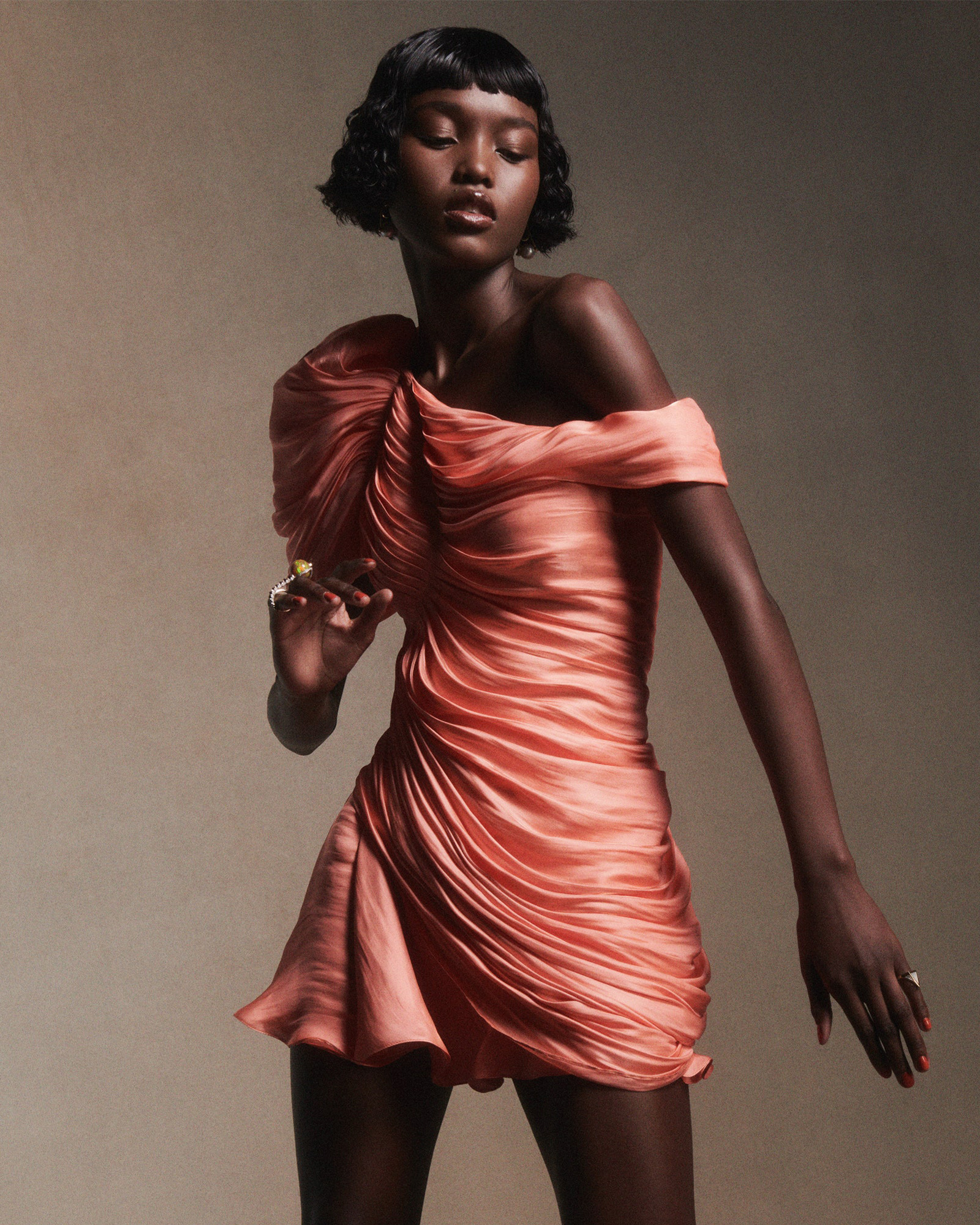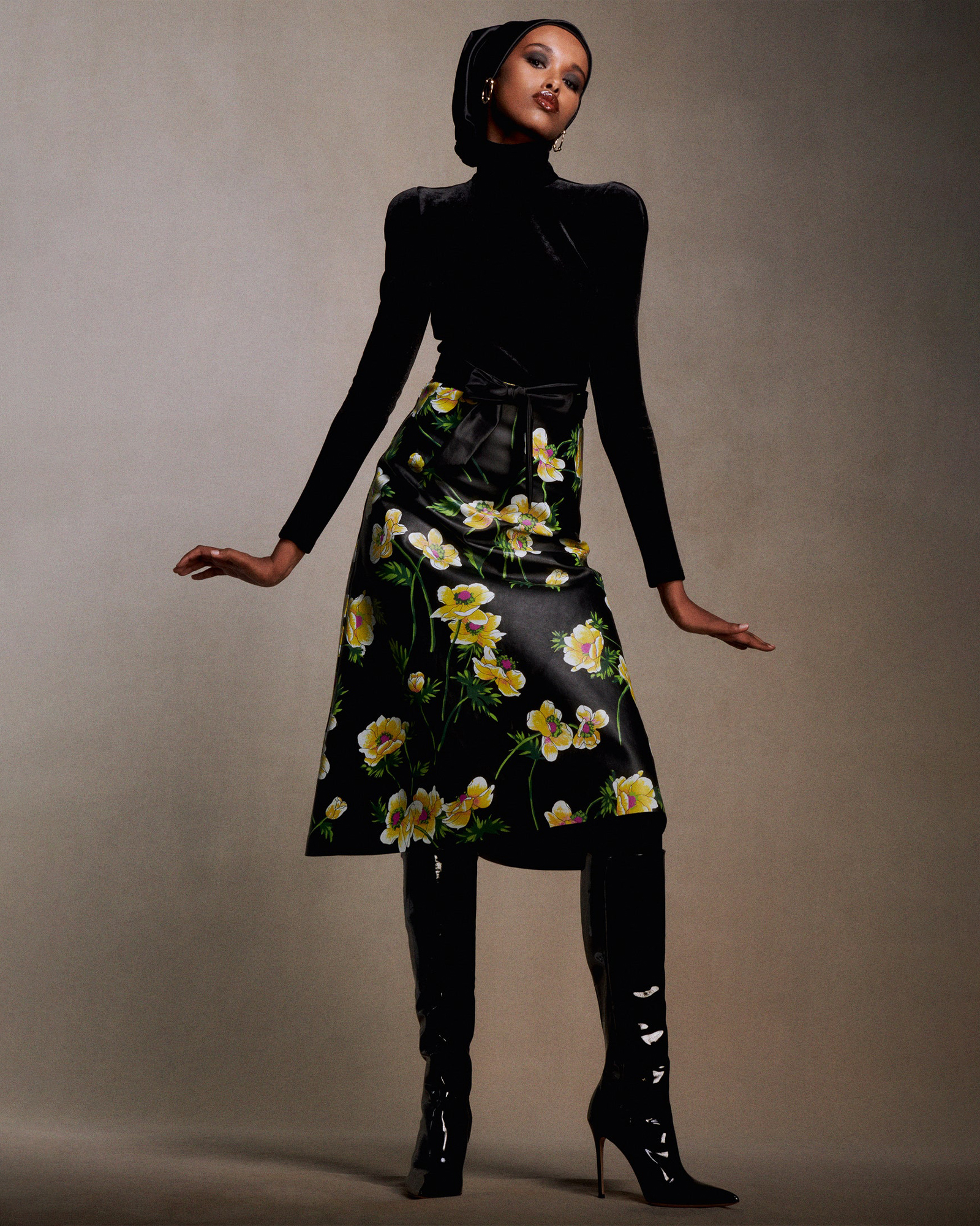 On a warm Wednesday in July, Big Sky Studios in North London was filled with an electric energy. “Having all of us together—it felt like a close-knit community of dream-chasers,” says Rayan El-Mahmoud, a model from Accra, Ghana. “We laughed and supported each other.” For Abrar Mohamed, a Londoner who graduated from King’s College with a degree in classical studies a week after the shoot wrapped, any anxious feelings dissipated as soon as she arrived on set. “The main thing that was going through my mind was whether I was good enough,” she confesses, “but the warmth and kindness radiated by everyone gave me a newfound sense of belief in myself.”
