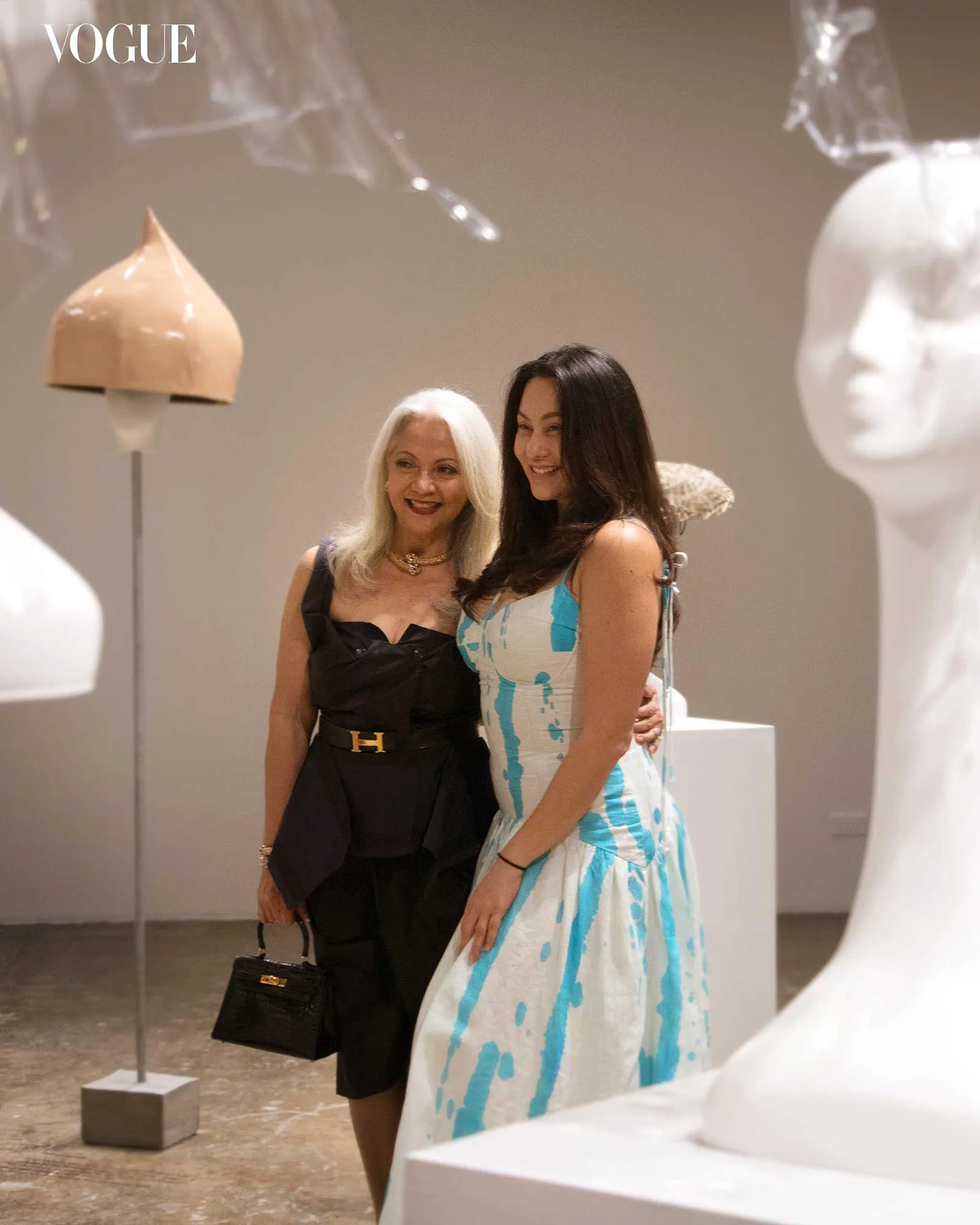 Displayed in the white expanse of the gallery, the hats float like voices suspended in air, twenty talking heads that each tell their own story. The salakot, a hat deeply tied to Filipino culture, serves as her starting ground. “It’s the archetype,” she says. “I want to interpret it in a modern, contemporary way.” A piece she calls ‘Pagsanjan Falls,’ sculpted from PETG plastic, evokes the movement of water. “When I come here, I go swimming. I want to make something really fluid, inspired by our ecosystem.” The ‘Bahay Kubo’ hat was handmade with buntal. “I really wanted it to look like it was floating on top of the cap,” she explained, mimicking the silhouette of an Ifugao house. Another hat translates the ‘Banaue Rice Terraces’ into form, a challenge so technically demanding she learns woodworking in order to carve her own hat block in London. “Each hat needs its block,” she explains. “So for the terraces, I have to learn to saw and make a block in the shape of the exact terrace. I’ve never done that before.” For Dulce, the discipline is instinctive, if the tools do not exist, she teaches herself to make them.