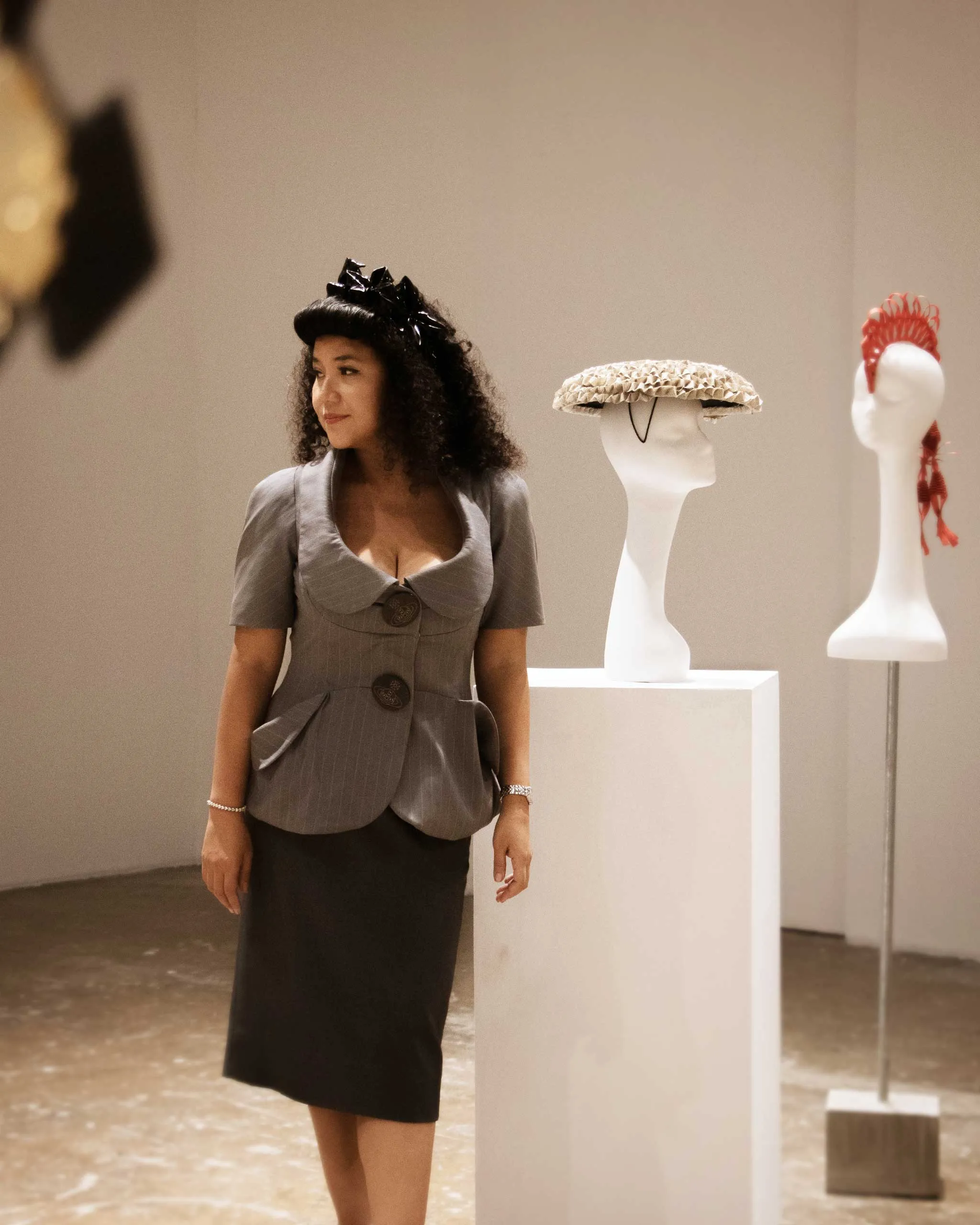At Finale Art File in Makati, Mich Dulce unveils Nagsasalitang Ulo, an exhibition she resists calling a collection. Instead, she presents it as a narrative of form, memory, and heritage, shaped over the course of a year through research into Filipino identity, geography, and tradition. More than an exhibition, it is both a homecoming and a reclamation. “My artistic work is normally biographical,” she explains. “But over the past two years in London, working within the Western millinery ecosystem, I really want to challenge myself and think about how to decolonize millinery. Because it’s all Western, right? Traditionally, my work, if you see my old work, it’s all using British shapes. What I want to do now is use the Western materials, but really do research to think about our geography, our culture, and our traditions. What is a shape that’s Filipino?”