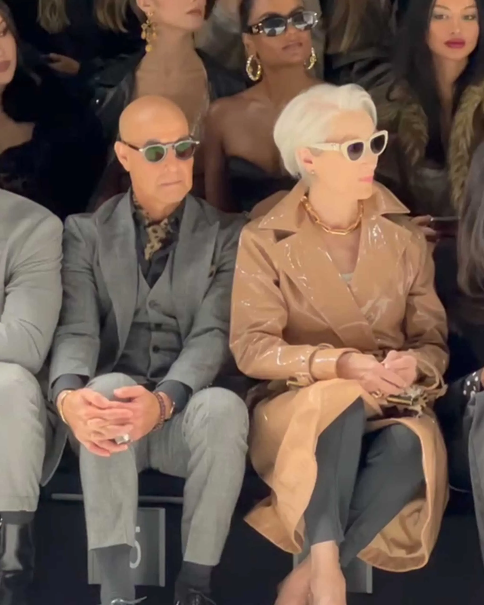 Meryl Streep and Stanley Tucci got into their Devil Wears Prada characters—and were also joined by their new castmate for Devil Wears Prada 2, Simone Ashley—for today’s runway show, dressed in full Dolce.