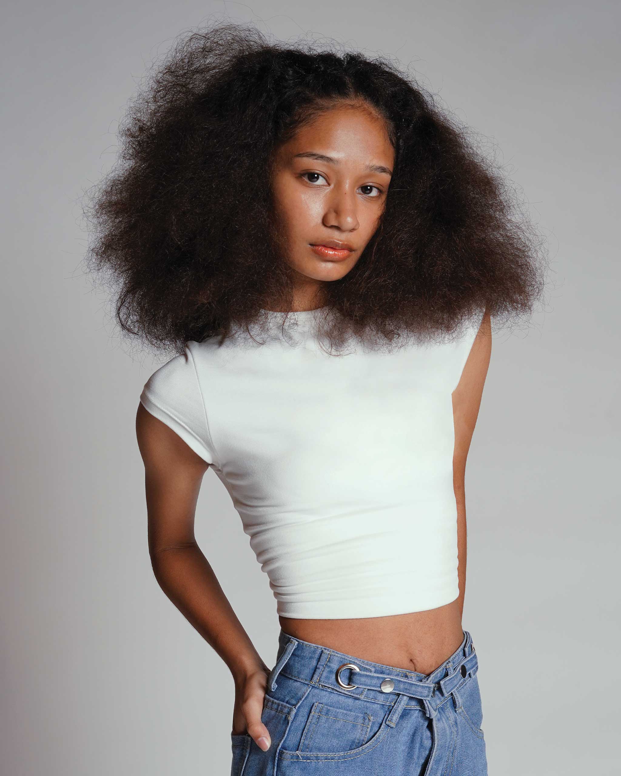 Known affectionately as Yanna, the 20-year-old was born in Sta. Cruz, Davao del Sur but grew up in Davao City to an adoptive family. Hailing from the indigenous Bagobo tribe, she grew up surrounded by a community that respected and celebrated the diversity of backgrounds and traditions that co-existed within their shared space. Despite being bullied as a young girl for her darker skin and curly hair, Gutierrez finds comfort and strength in the support of her family. As an aspiring architect, she dreams of designing a house for them and of simply creating spaces where people can find comfort and a sense of belonging.