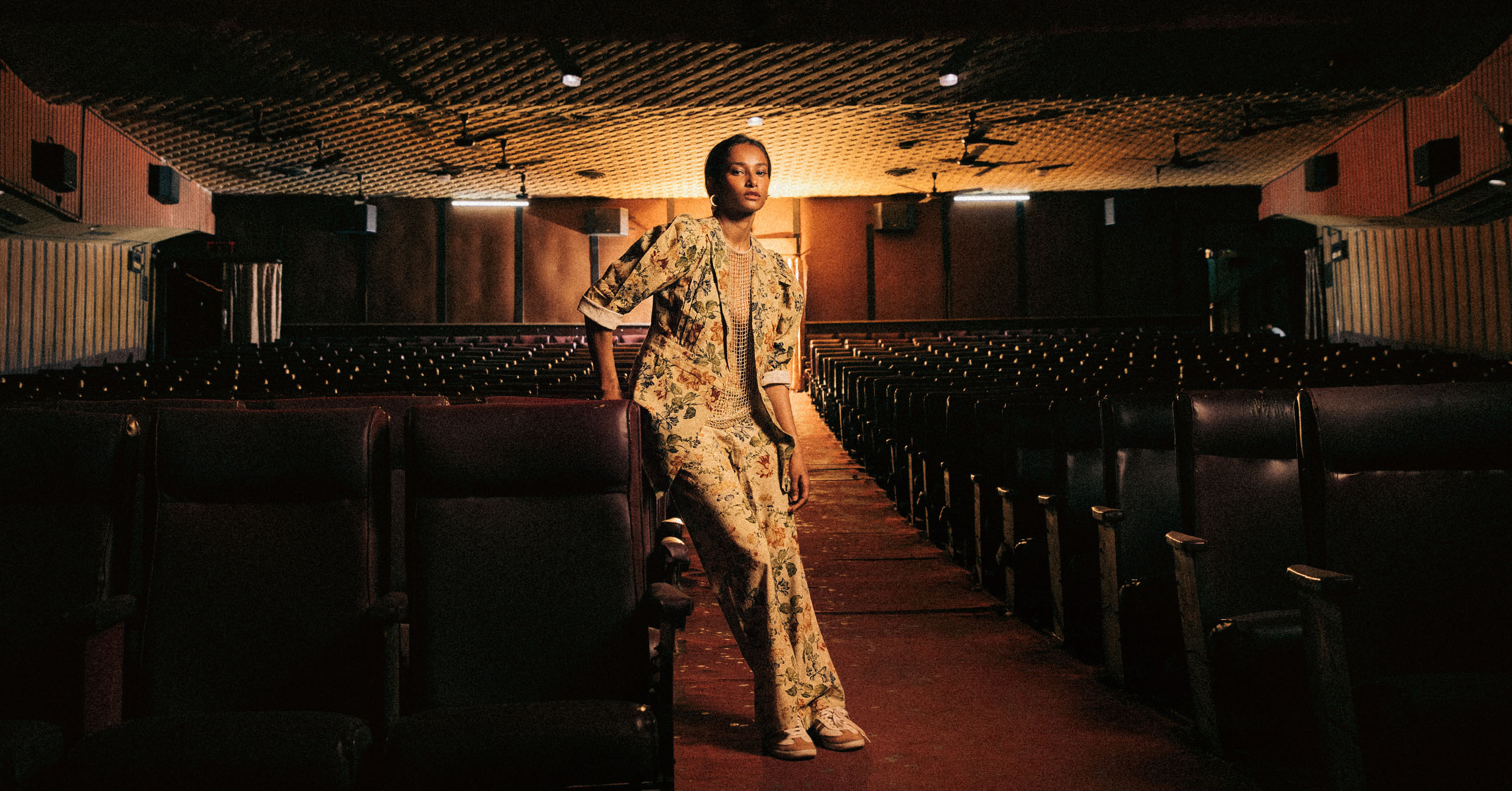 It was early morning in Mumbai when Nidhi Sunil took over the Gaiety Galaxy—five hours before its first matinee, to be exact. Within a limited timeframe, the model could call the place her own, lounging over a popcorn machine; watching over reels in the backrooms; standing within the red-hot glare of a lofty projection. The Gaiety Galaxy is the city’s mainstay establishment for film enthusiasts. It’s where audiences could dance, holler, and allow themselves a freedom of expression that would ordinarily be shut down just about anywhere else.