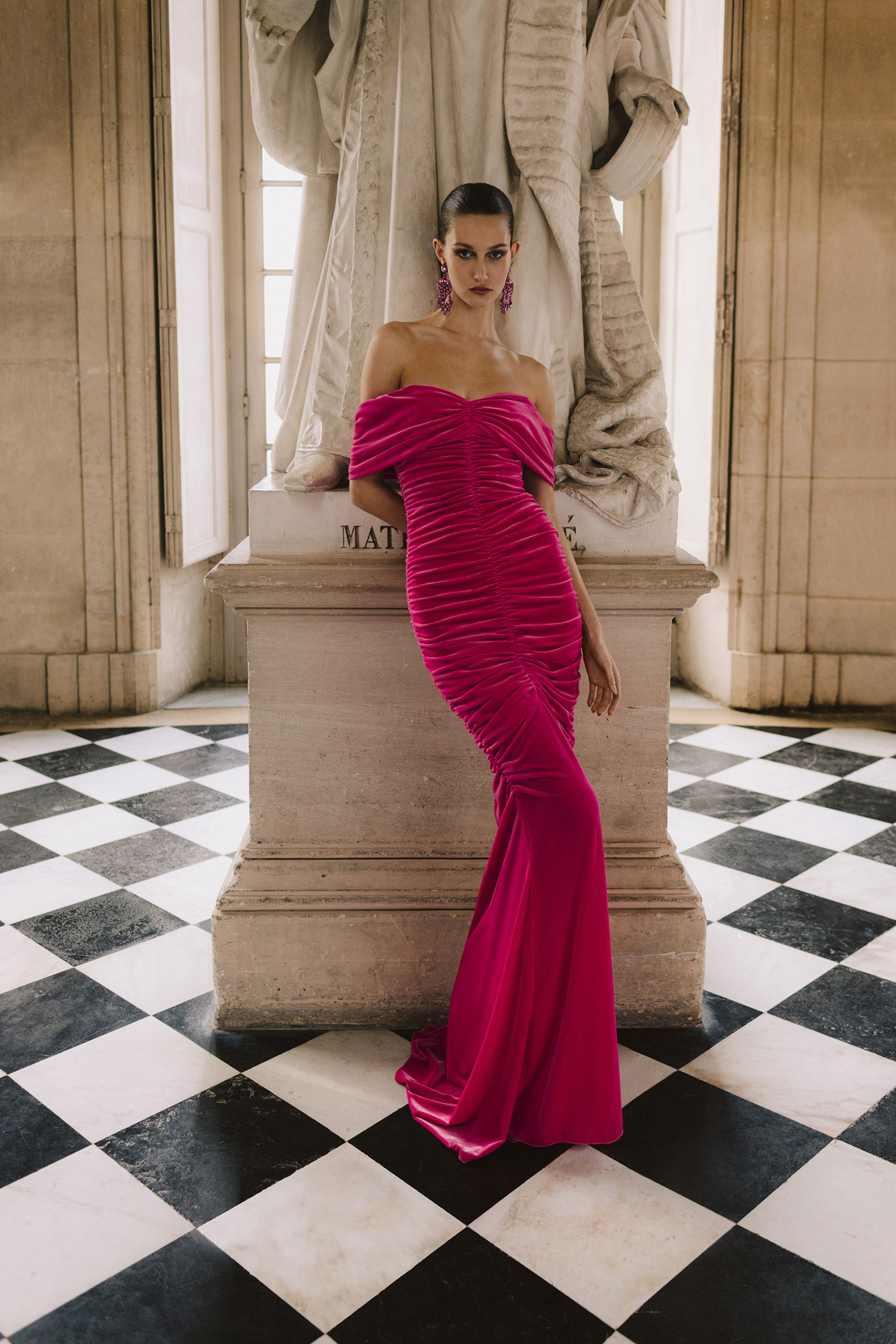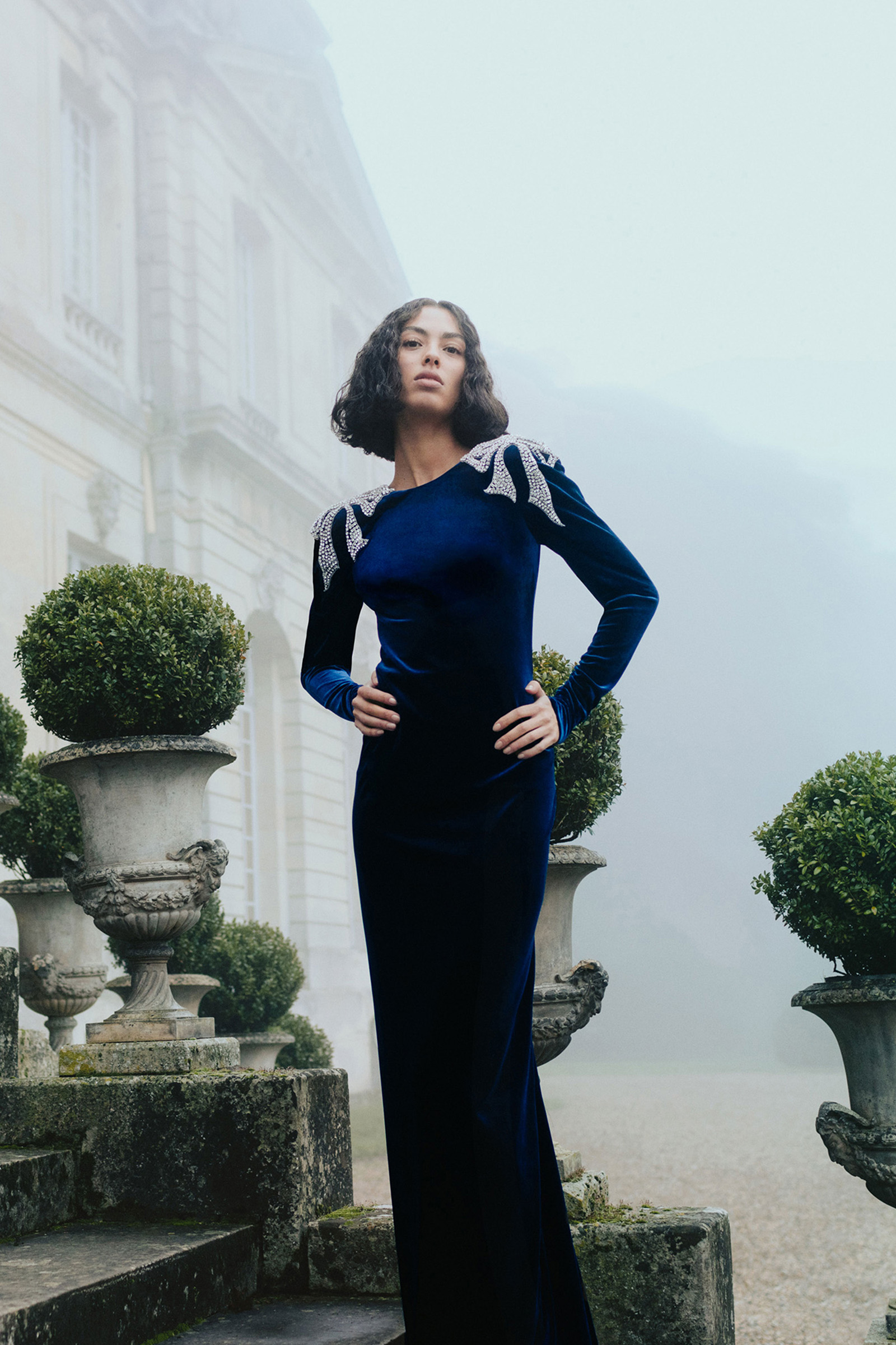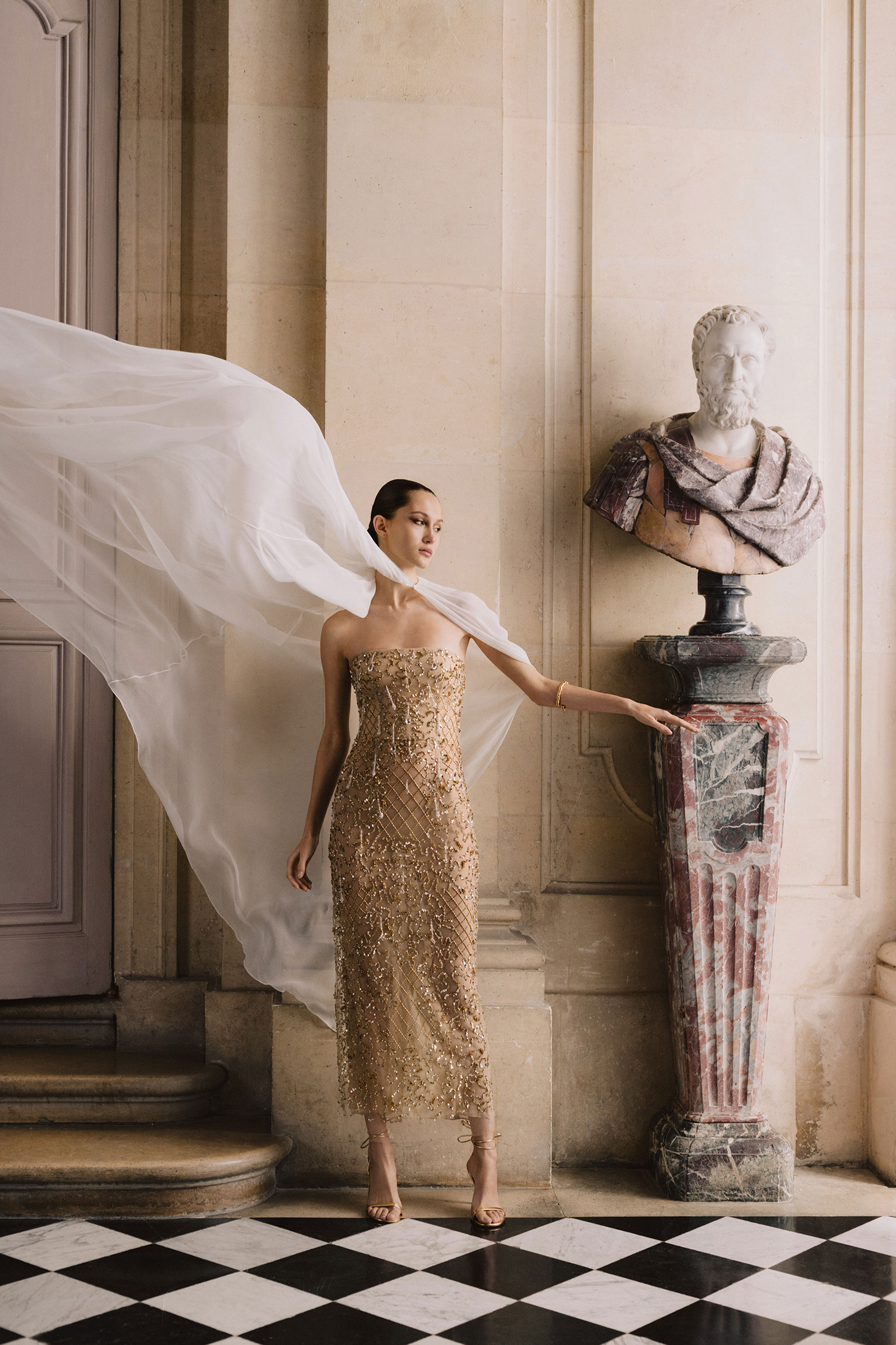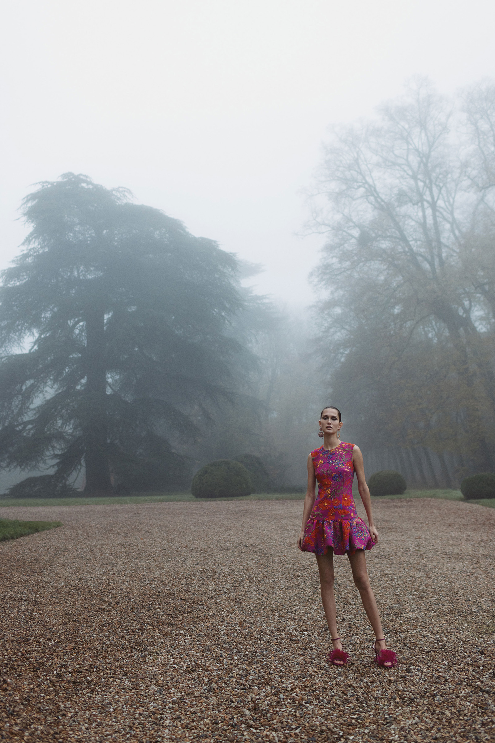 In recent years, Lhuillier has made a habit of traveling to dreamlike locations to photograph her latest lookbooks. Last season saw her ultrafeminine pieces in colors of floral blooms light up the alleyways and gondolas of Venice. Before that, for Fall 2022, she channeled the roaring twenties in Paris and New York, the two cities which captured the era’s energy best.