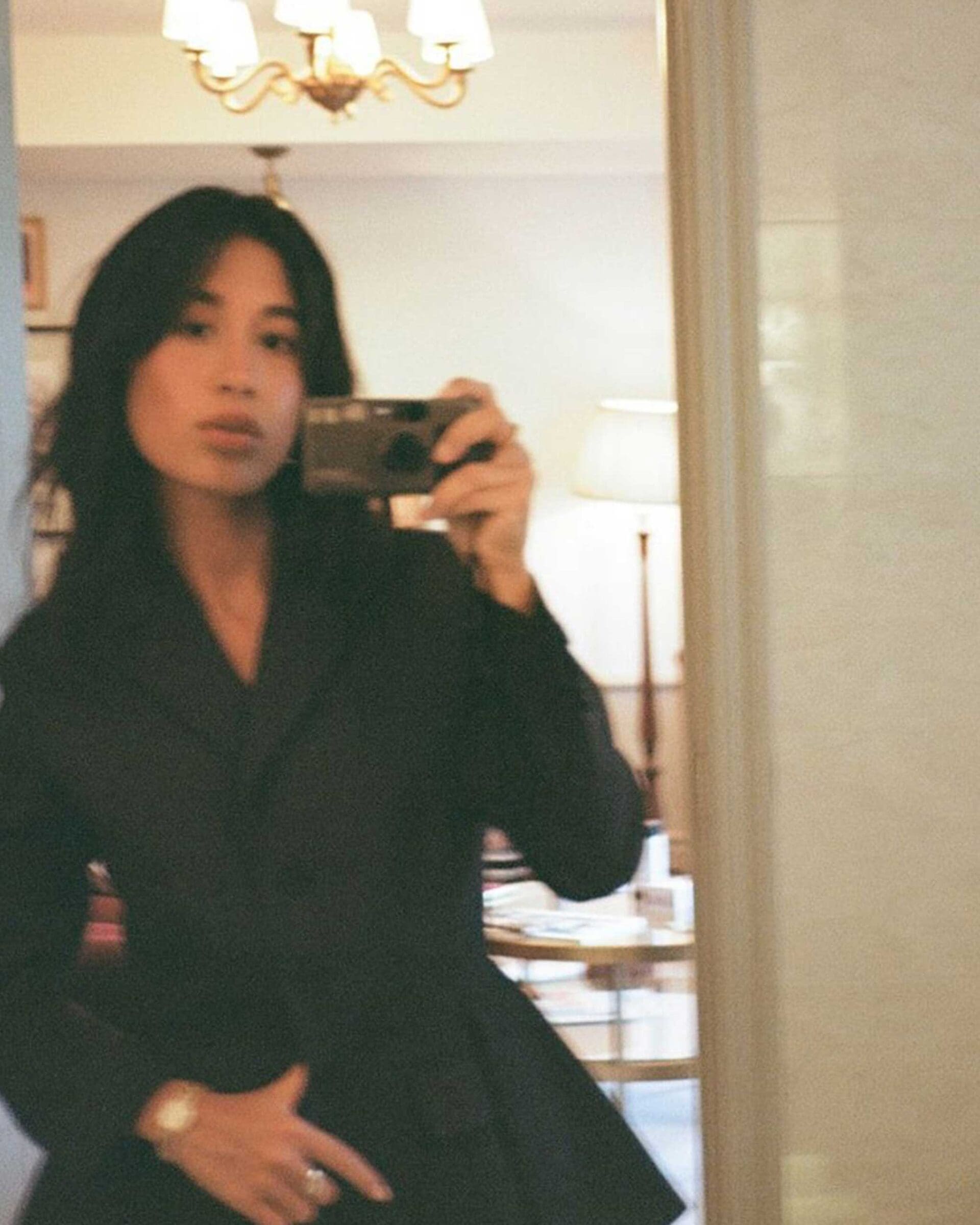 Naturally, Jane Birkin’s name does crop up in this conversation about French-girl style. Moya cites the “Margiela collection for Hermès that Birkin wore” as her dream wardrobe. “Oversized knits, deep V-cuts… it’s comfortable yet polished,” she says. Beyond that: “I imagine myself as a Chloé girl by day and a Saint Laurent woman by night. It makes me excited to be a woman.”