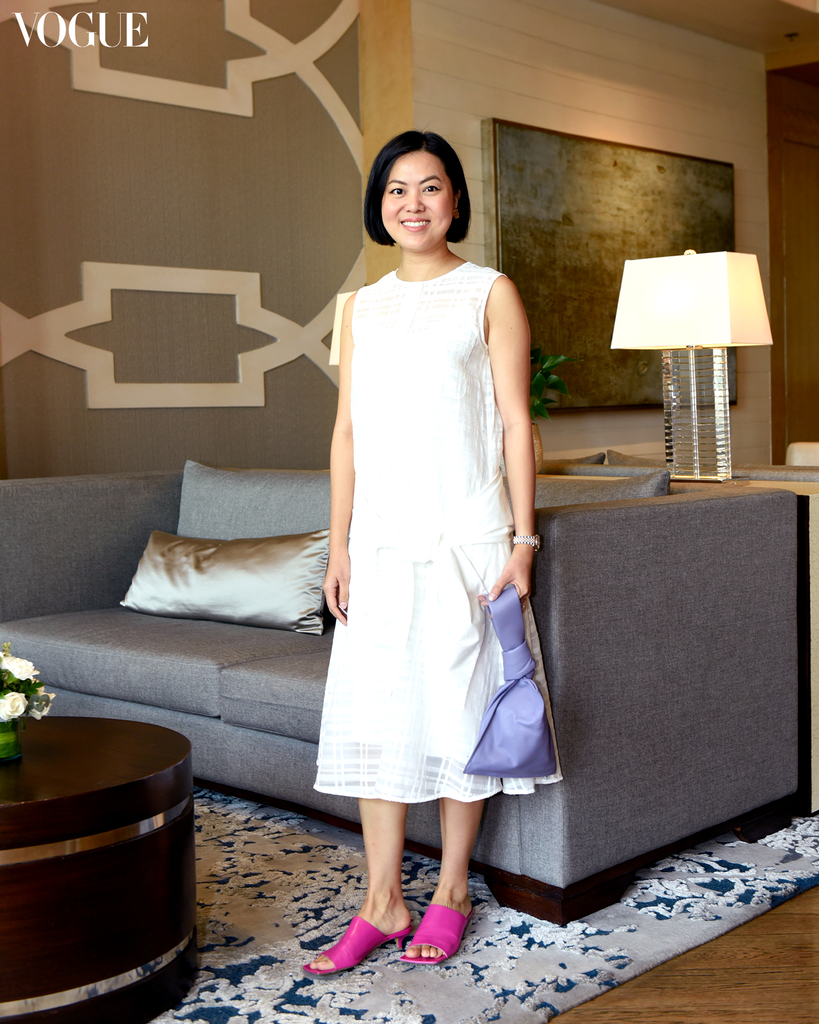 Maxi dresses and skirts in melange textures also made several appearances: BELO Group managing director Cristalle Belo-Pitt wore an eyelet lace paired with neutral accessories; Lifestyle Asia editor-in-chief Candy Dizon arrived in a crisp shirt dress; and lastly, designer Jill Lao in a calf-length dress with a sweet bow tied at her lower waist.