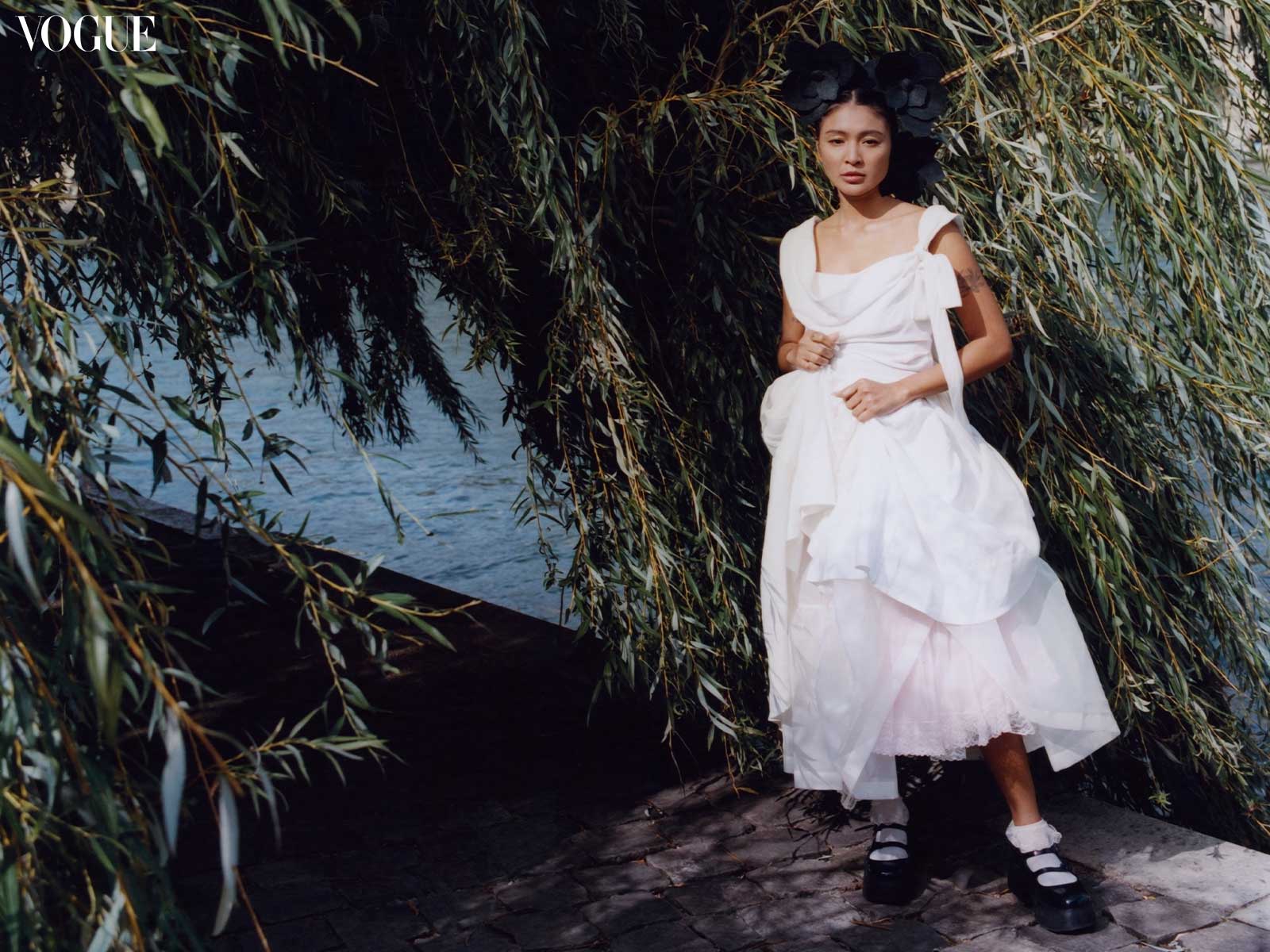 Nadine Lustre finds a serene moment among willow trees by the river Seine wearing Mich Dulce’s latest pieces.