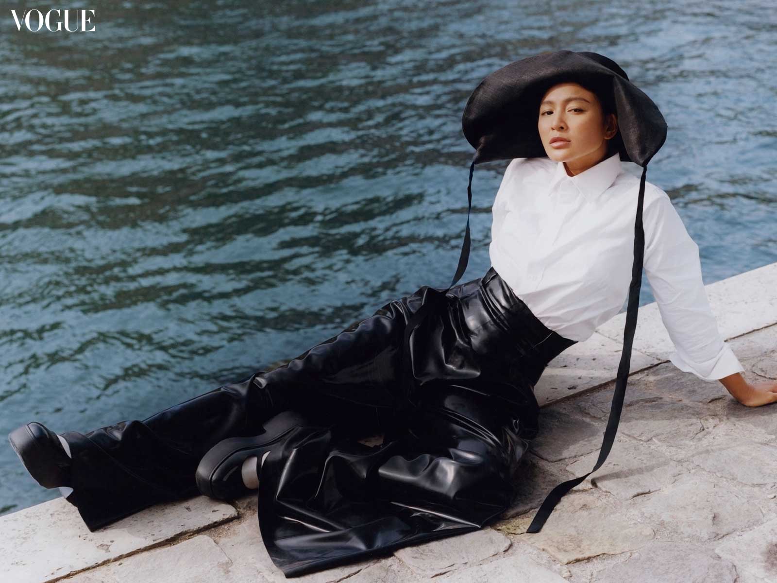 Consider her 2023: A year removed from when she first appeared on the pages of Vogue Philippines, she has won another FAMAS best actress plum for her role in Yam Laranas’ Greed, launched Maison Bukana Wines with beau Christophe Bariou, wore everything from Slim Higgins and Rajo Laurel, to Mugler and Prada at her first Paris Fashion Week. She also put out music for the first time in two years with “Overgrown,” a track she did in collaboration with South Korean company Wild Entertainment. She says that the single was a tribute to her 20s, a period of “scars” and “lessons” gleaned from having a fish bowl celebrity life. “We all go through something, and we all have to grow from it. I mean, it’s part of growing,” she says in an interview last year. “Whatever it is that we go through, it’s essential to our growth, and as long as you keep accepting all of those challenges, you know, like, you keep growing and growing is inevitable, you can’t stop it from happening.”