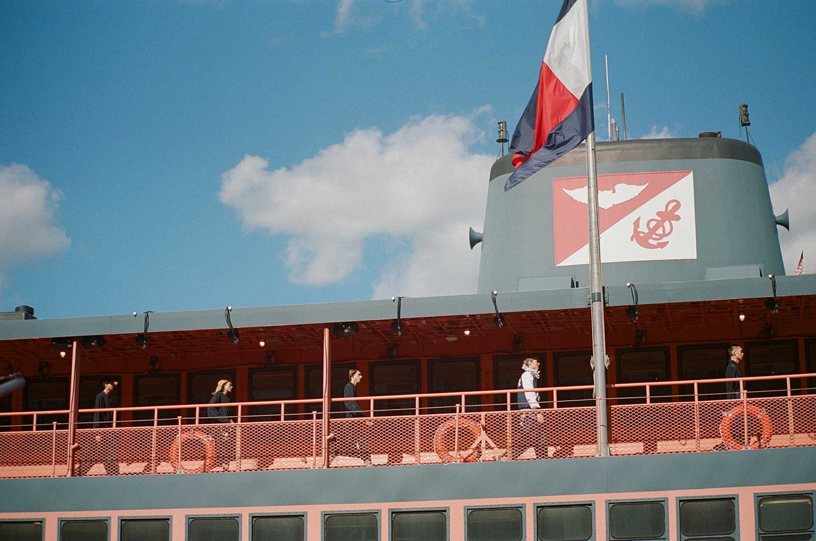 Tommy Hilfiger’s spring 2025 collection, presented aboard the retired Staten Island Ferry, embraced classic Americana through a new lens. Known for his preppy, all-American designs, Hilfiger played with traditional themes like nautical and collegiate style but injected a sense of modernity through relaxed, lived-in styling and surprising details like crinkled fabrics and colorful capris.
