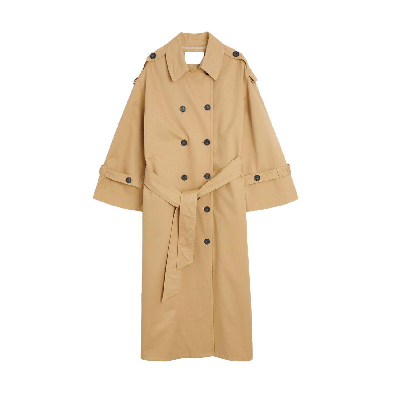 You can’t go wrong with an oversized trench in the outerwear’s signature beige hue. Large lapels, wide waist tie, and belted cuffs provide modern updates to the staple coat.