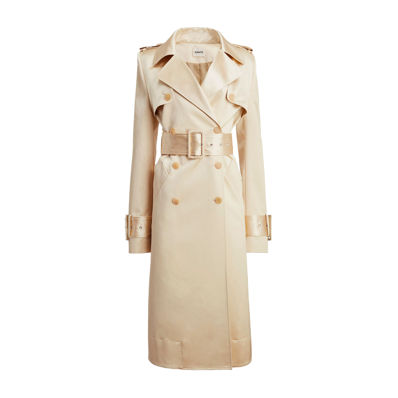 Don’t disregard the trench as a silhouette you can wear for a night out. Case in point: Khaite’s elegant satin belted style. Complete your evening look with platform heels, a clasped pouch, and a little black dress.