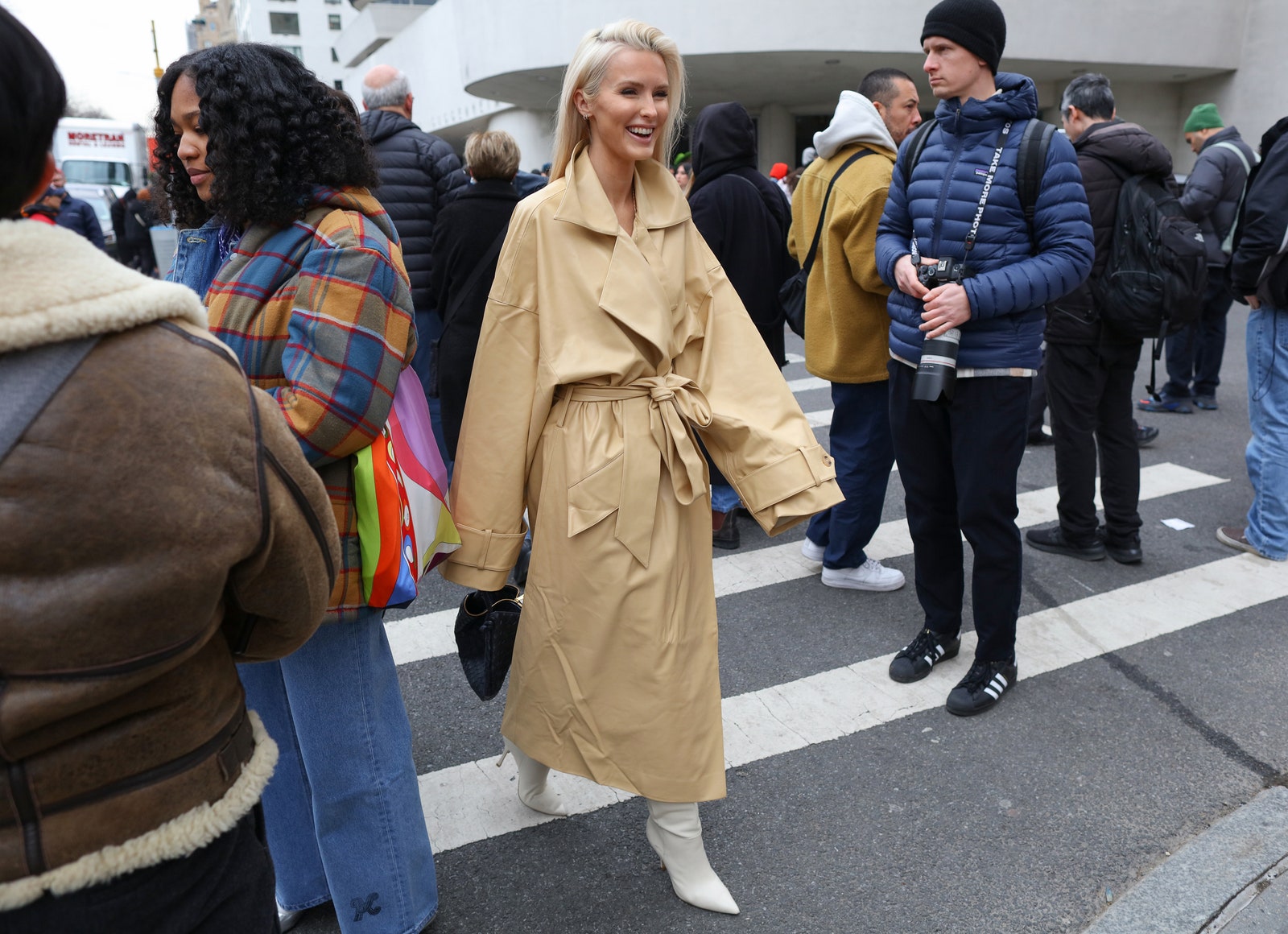 With unusually warm temperatures for a February New York Fashion Week, showgoers took advantage of the opportunity to step out in spring-ready wardrobes, leaving winterwear behind. In exchange for puffers, shearlings, and faux furs, street style fixtures captured by Phil Oh opted for lighter outerwear options and sometimes no outerwear at all. Among them, a handful of iterations of the classic trench coat were worn by the likes of Eva Chen to Kate Davidson-Hudson, albeit styled in many different ways.