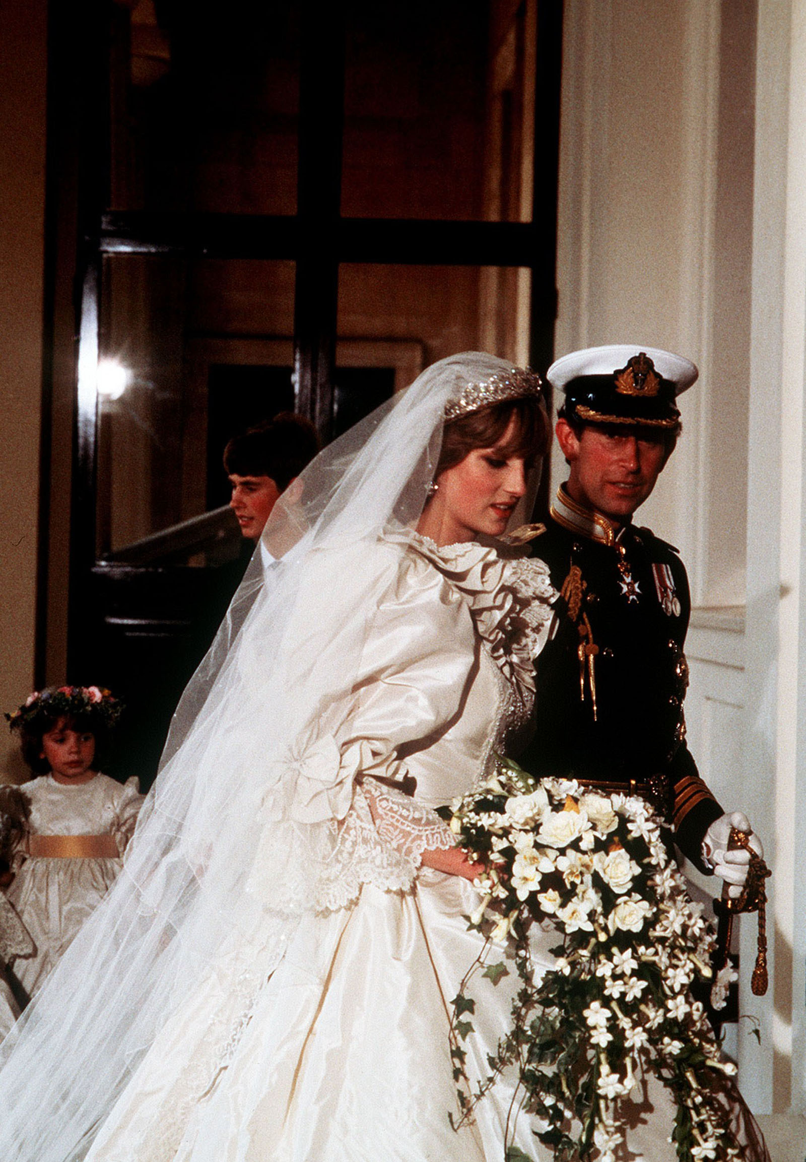 David and Elizabeth, who had to employ their mothers in order to complete the painstaking needlework on Diana’s dress in time, were Miss Peggy’s only lifeline throughout the solitary process. “Despite the enormous amount of work involved she remained calm throughout,” recalls Elizabeth of the now-retired embroiderer. “We were confident she would interpret our vision perfectly and she did.” The designers only saw Diana wearing both dress and veil at the final fitting in Buckingham Palace, because there was too much froth to fit into the Emanuels’ tiny showroom. “The effect was magical and Diana looked dazzling—like a real-life fairytale princess bride,” she shares. The pictures of the radiant young woman, a nursery teacher-turned-royal shrouded in a cloud of glittering tulle on her 1981 wedding day, would go down in history as one of the most epic bridal looks of all time.