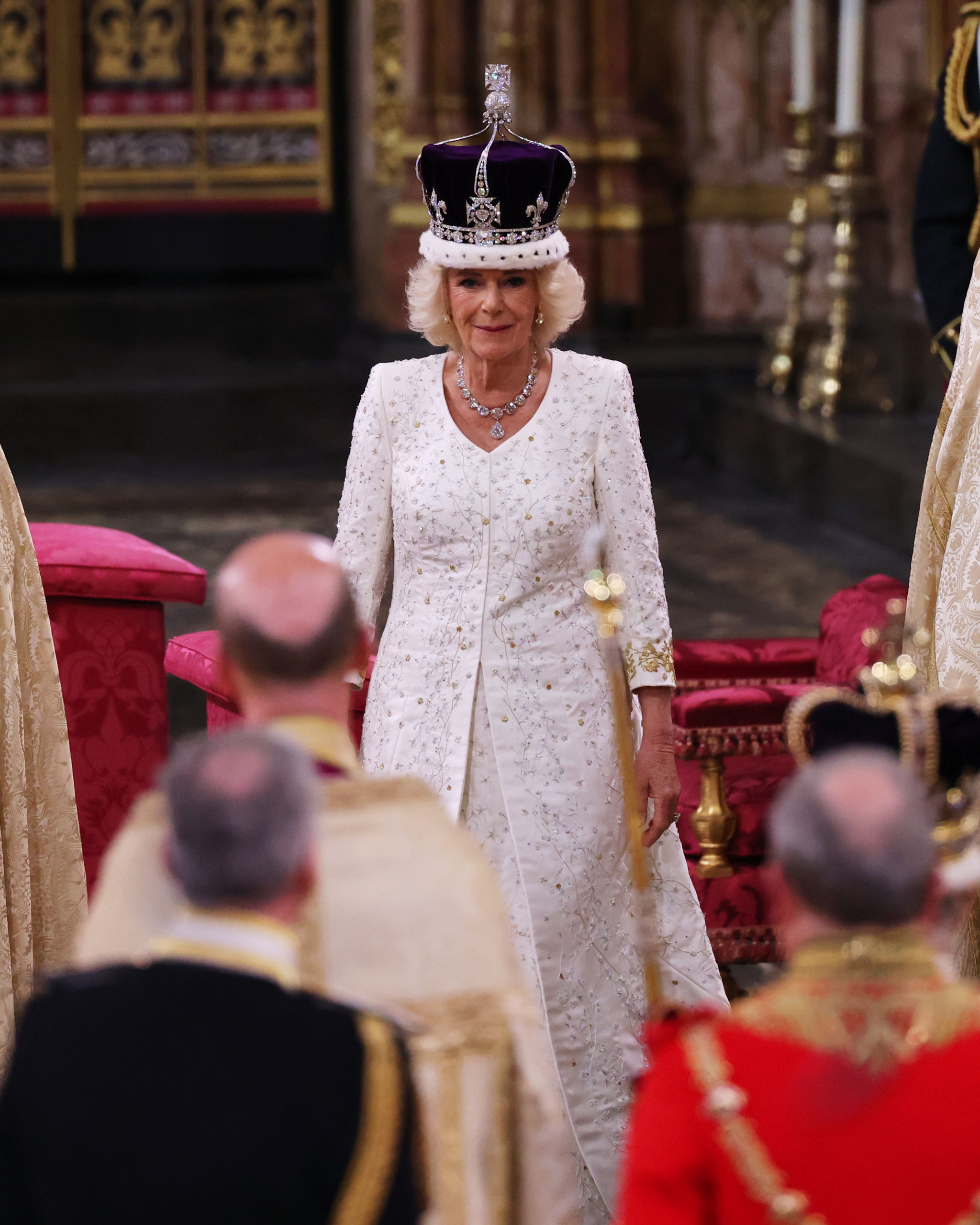 On May 6, the Archbishop of Canterbury officially crowned Queen Camilla at Westminster Abbey during King Charles’s coronation. He did so with a historical diadem: Queen Mary’s Crown, which was lined with a purple velvet cap and an ermine band.