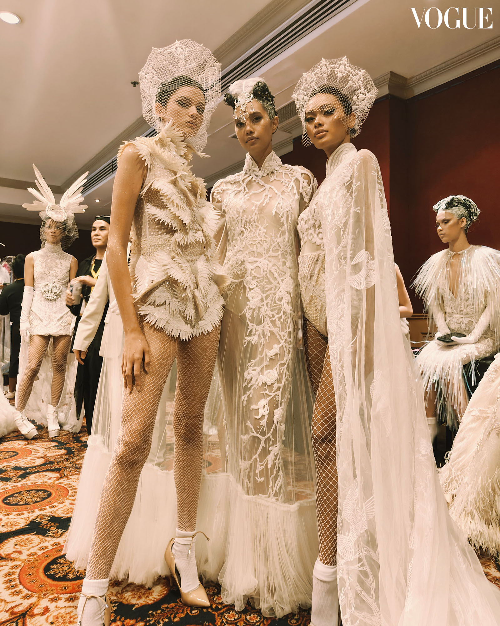 Titled “Immaculate Machinations,” the designer reexplores the motifs that have come to define his signatures, those which have made him so beloved by pop luminaries like Beyoncé, Lady Gaga, and Mariah Carey. Vogue Philippines fashion director Pam Quiñones, present at his show, notes his use of “fully beaded geometric panels” and “jagged edges on soft, sheer bases.” For her, the standout piece was the one with “intricate embellishments crafted to mimic feathers,” details telling of Furne’s couture sensibilities.