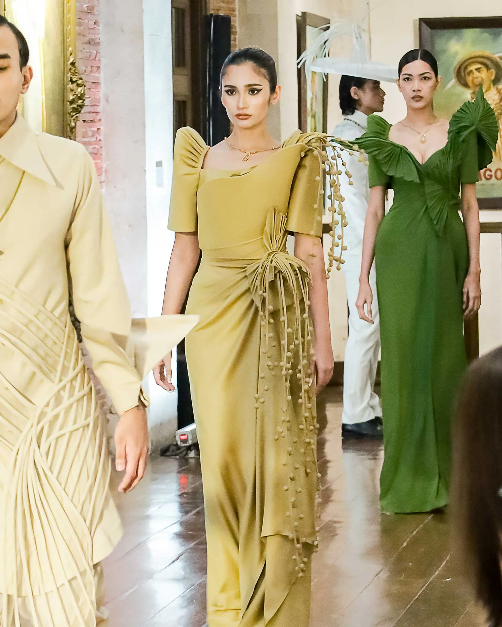The 20-piece showcase is the duo’s largest to date, rife with local and cultural references. These dresses in particular are inspired by palm trees lining the Loboc River’s deltas. Photographs by Julius John G. Baysic, Courtesy of the National Museum of the Philippines Bohol