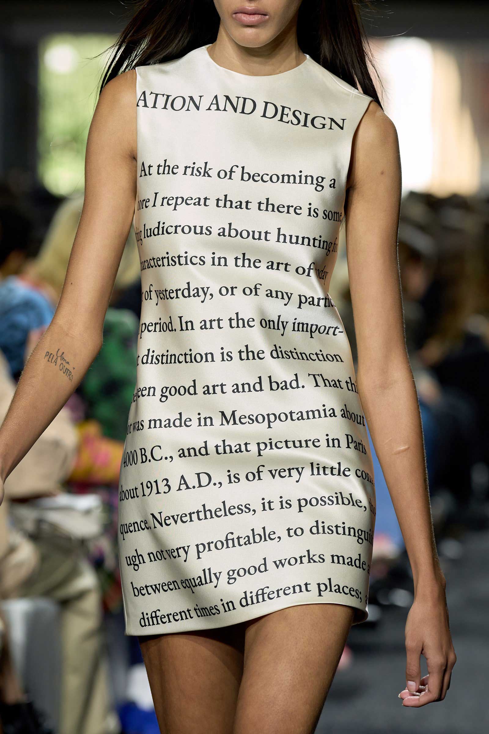 At JW Anderson, a text from Clive Bell was blown up and printed across dresses and knits. Photo: Armando Grillo / Gorunway.com