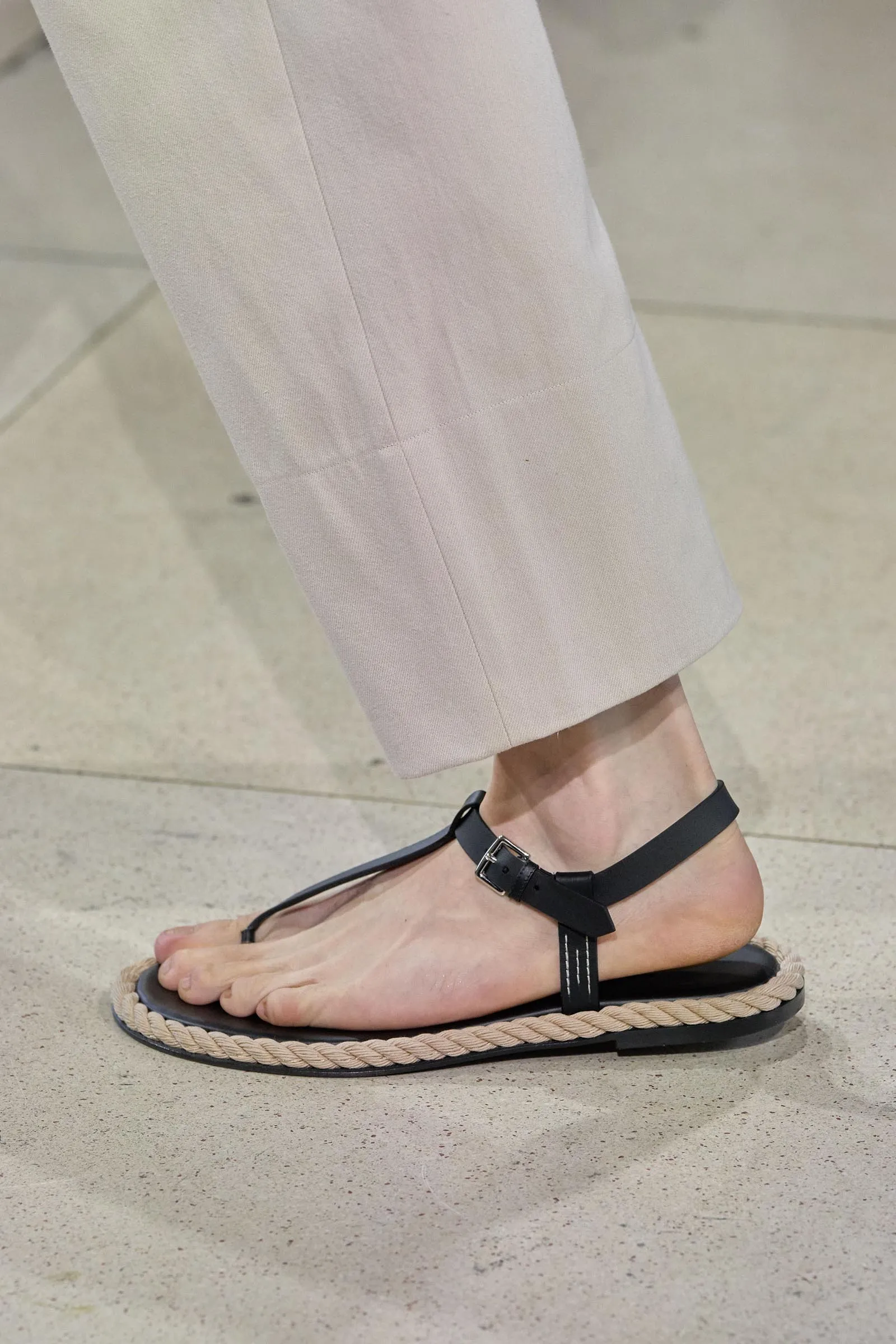 Of course, it is impossible to talk about an Hermès collection without taking a closer look at its accessories. This season, the spotlight was on oversized leather bags, duffels in canvas and calfskin, and totes perfect for any kind of vacation, in colors like chocolate browns, beige, and pops of yellow. When it came to footwear, there were open-toe sandals in calfskin and rope, as well as sleek derbies and ankle boots in either waxed calfskin or matt crocodile.