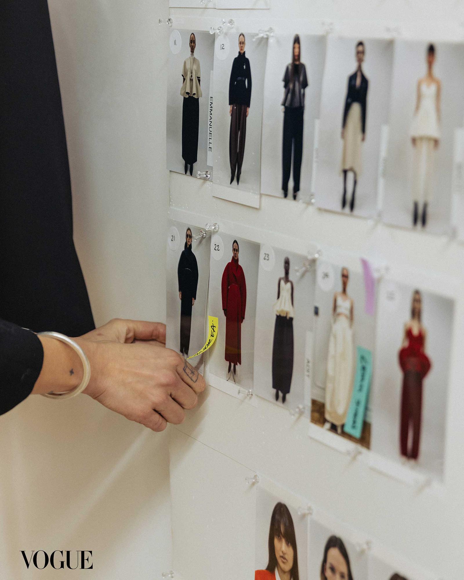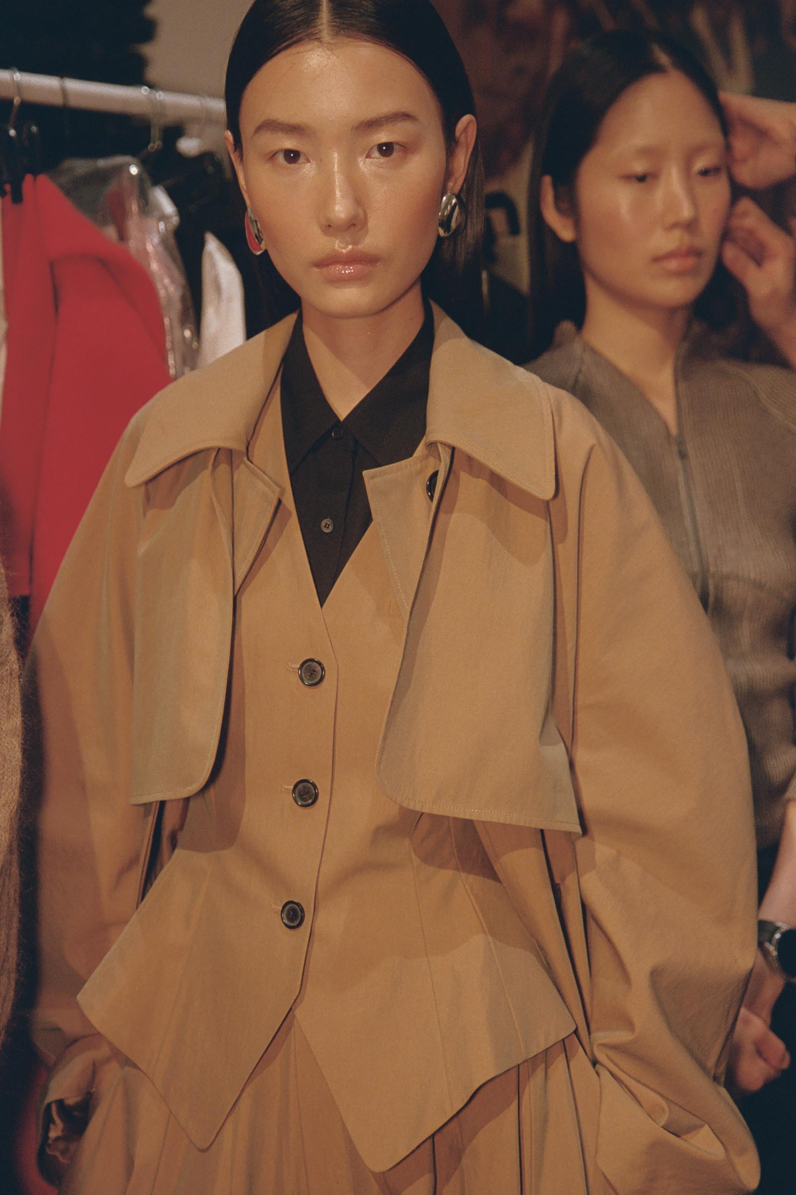 “It was about pushing her codes while ensuring that the collection still felt accessible. I wanted people to look at the pieces and think, ‘I could wear that,’” Levy explains. She sought to create looks that were “relatable” yet sophisticated, keeping in mind that the brand remains independent and targets an international audience. Although Levy didn’t single out one standout outfit, she expressed particular fondness for several pieces, including “the red coat” and the “persimmon trouser shape” that appeared repeatedly throughout the collection. She also highlighted the “compact knitwear with the peplum waistline shape” featured at the beginning of the show as a key favorite.