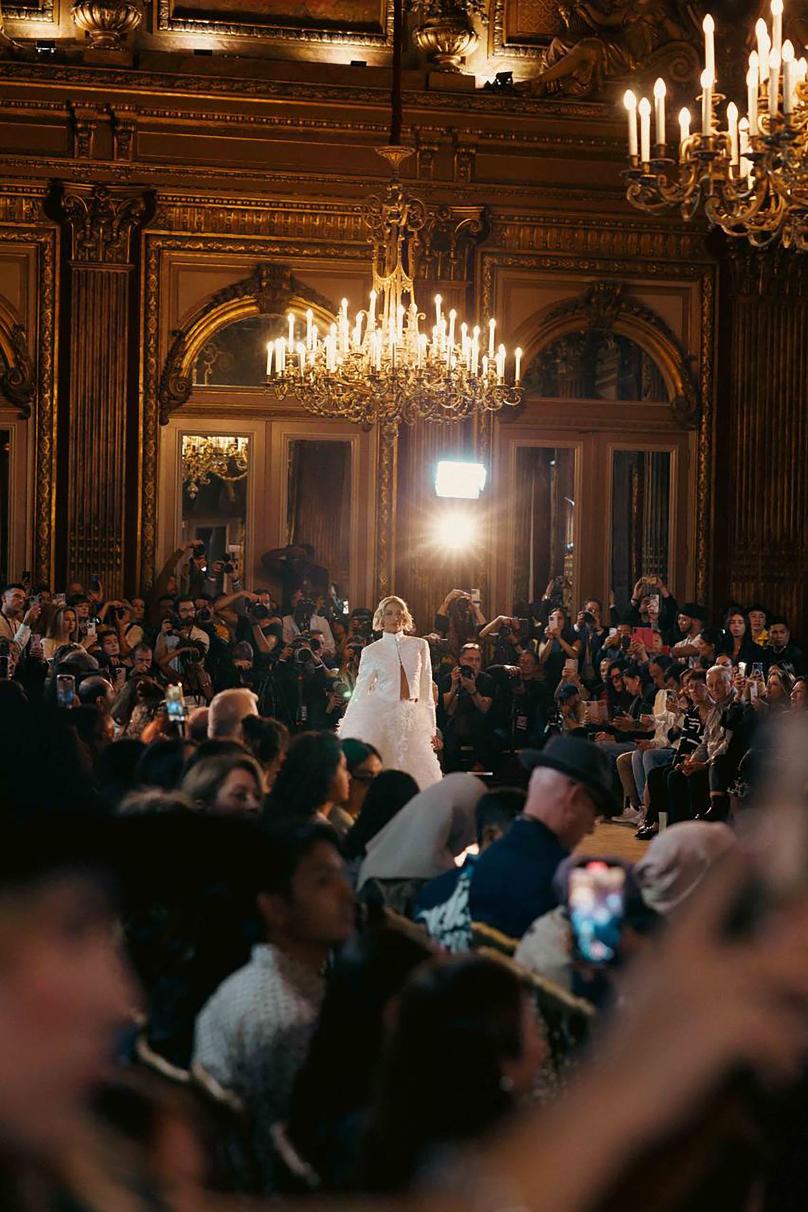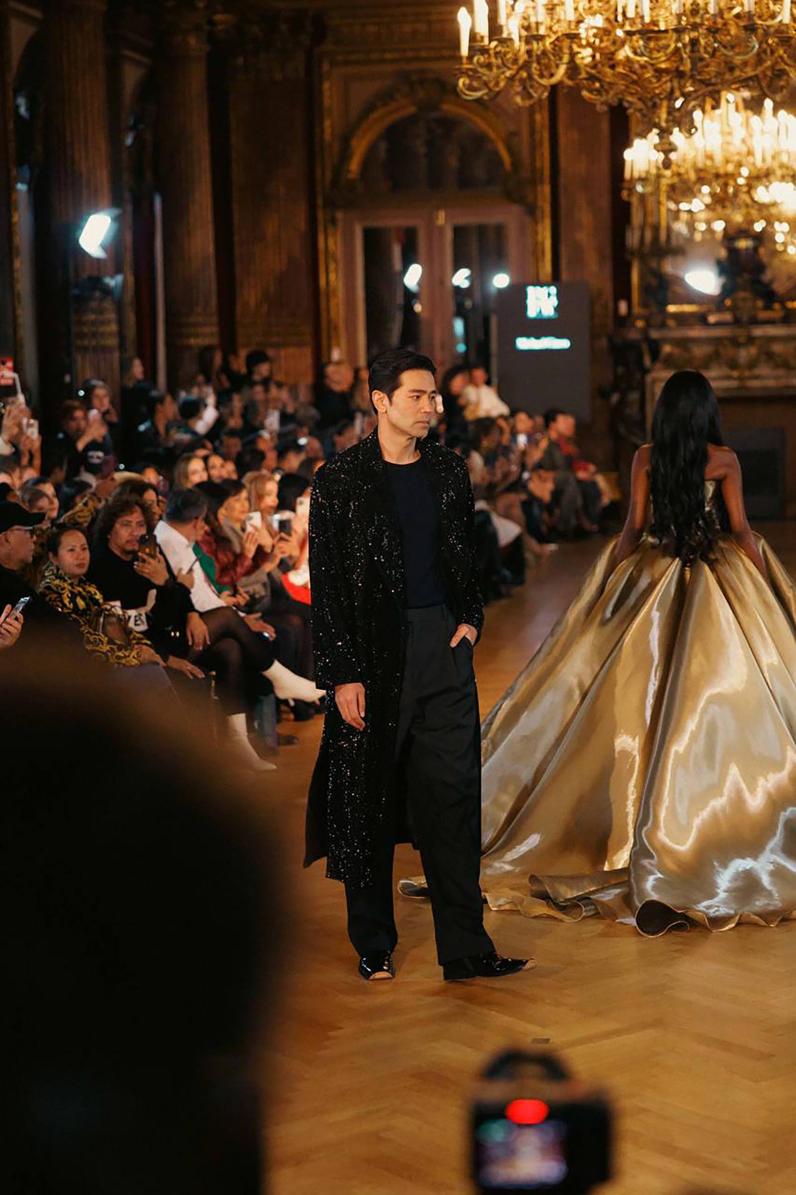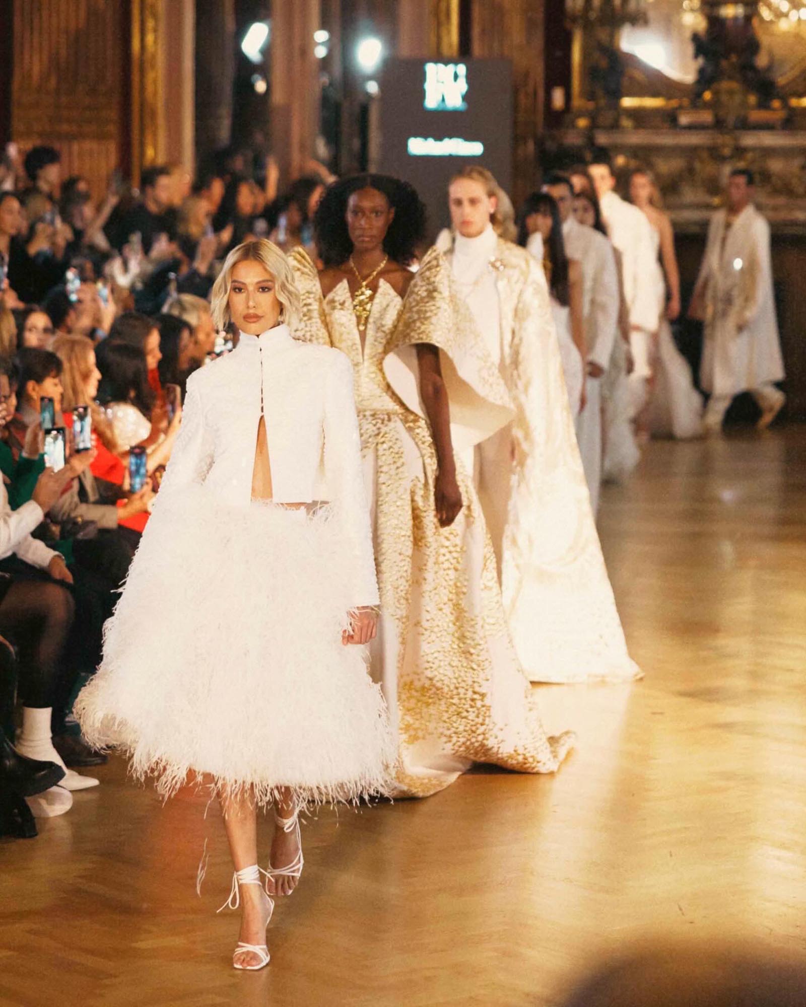 Dubai-based Filipino designer Michael Cinco’s Spring/Summer 2025 collection was unveiled at the Westin Paris-Vendôme during Paris Fashion Week. The show featured rich brocade fabrics, intricate embellishments, and silhouettes that blended classical influences like the terno (a traditional Filipino matching set of garments) with contemporary couture. For this collection, Cinco also used innovative techniques such as laser-cutting wool and adapting architectural elements. Among those who walked the show were The Real Housewives of Dubai personality Chanel Ayan, Hayden Kho, and Pia Wurtzbach, who closed the show.