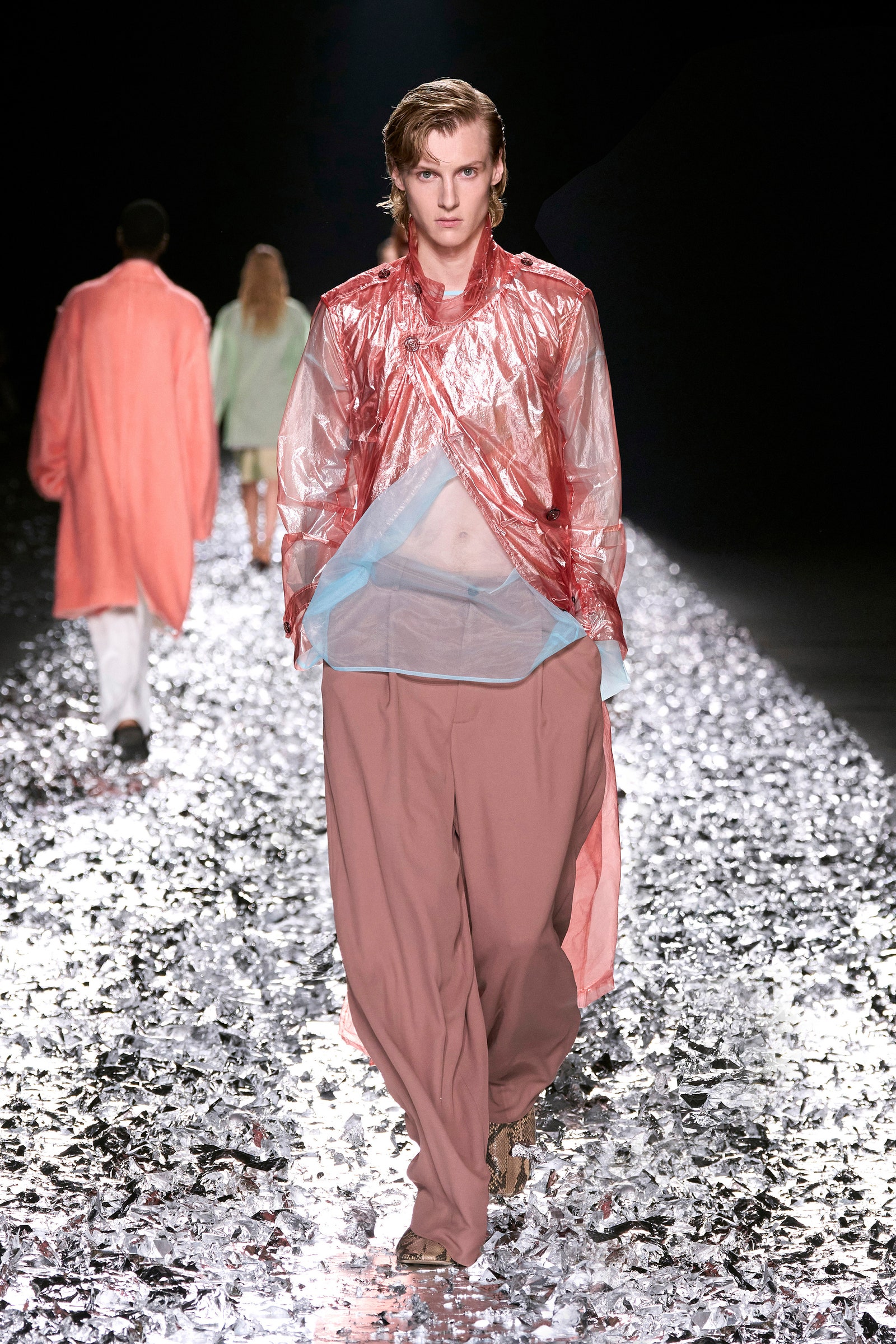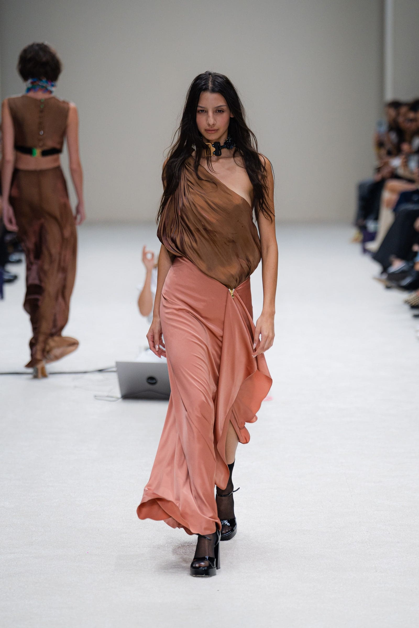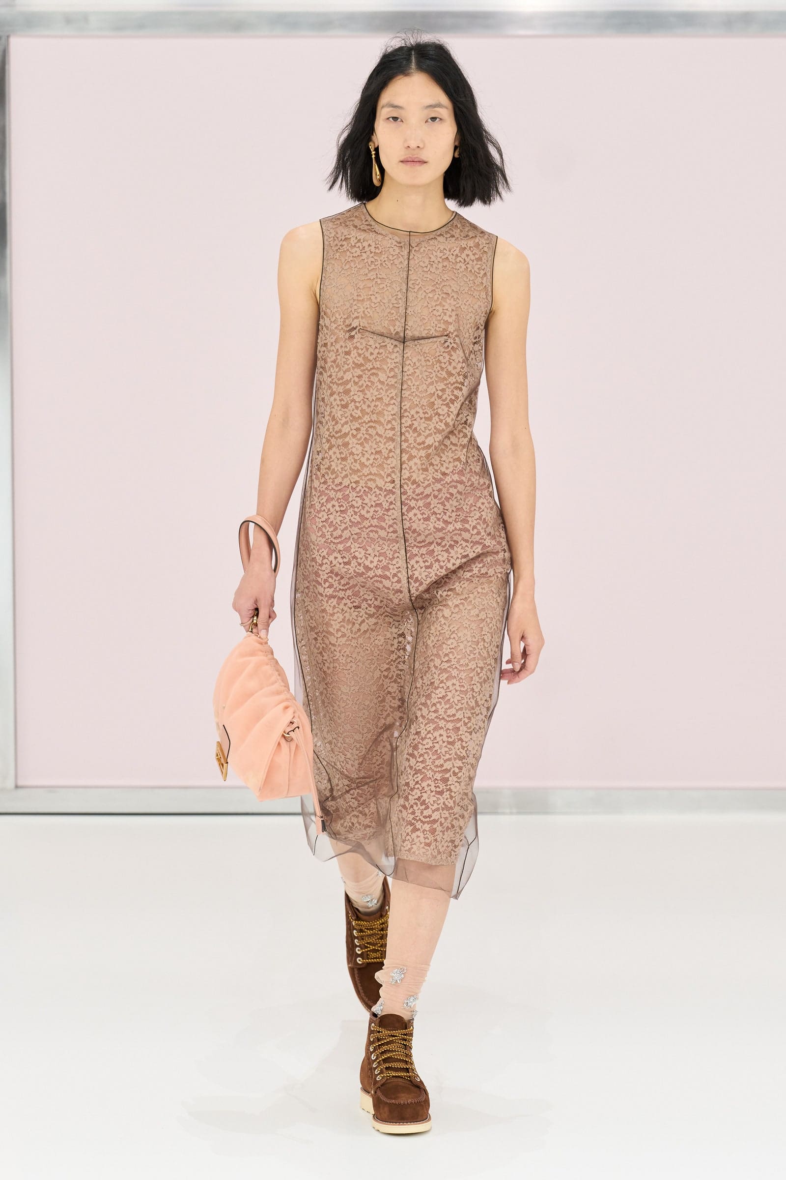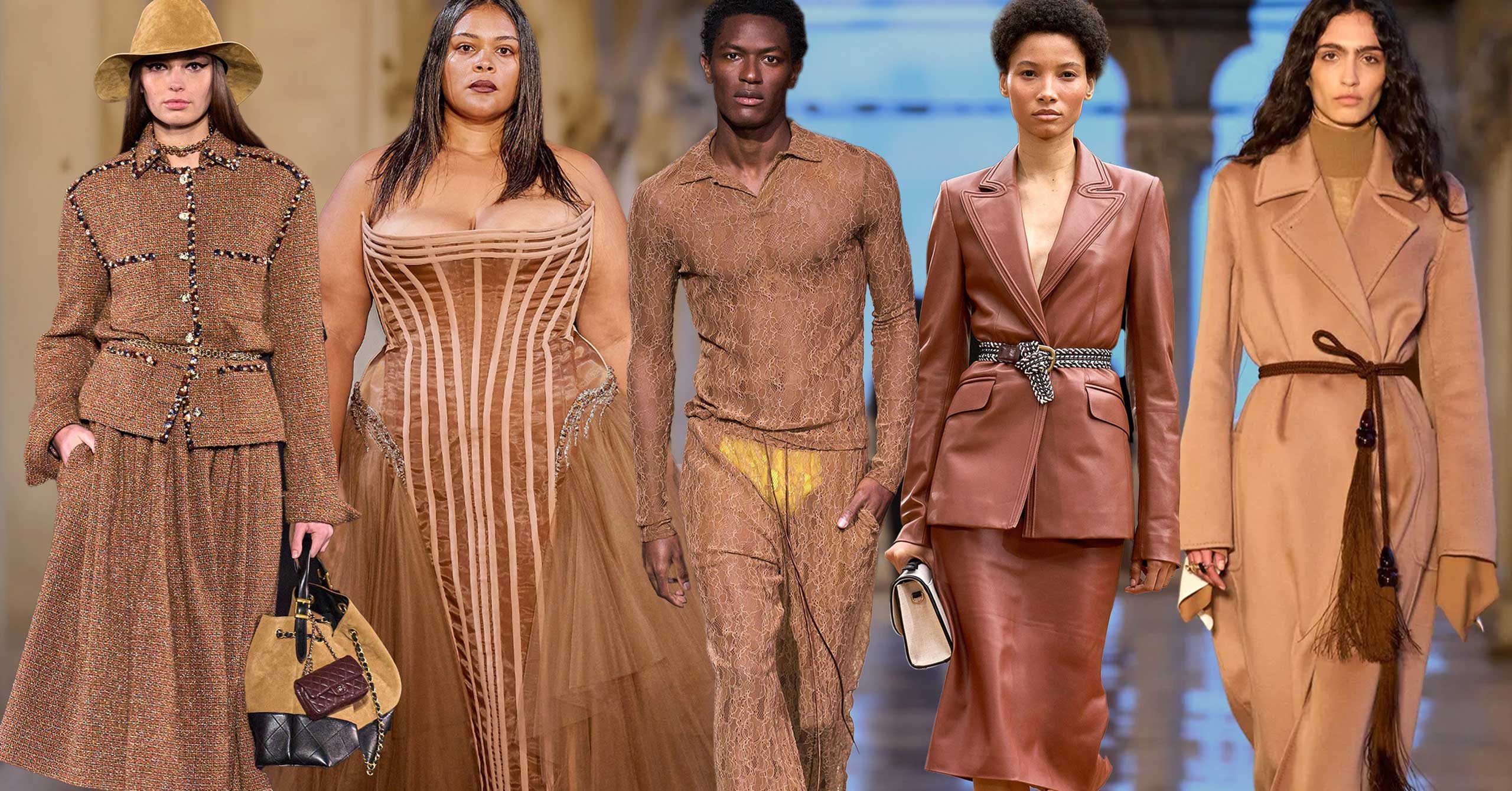 As it turns out, Mocha Mousse does have a strong presence in many men’s and women’s 2025 collections. Many designers seem to have also focused on that airy feel, using it in slinky silk satins, buttery leathers, and suedes, and other shaggy textures. Interestingly, on darker skin tones, Mocha Mousse becomes a nude. Lee Eiseman, the executive director of the Pantone Color Institute points out the shade’s versatility. “We might’ve called it an earthy color, but using it in a kind of silky texture brings a whole new feeling,” she said. “We call it a sensorial warmth because it does warm the senses; when we look at a color like Mocha Mousse, we can smell that warm, delicious aroma of chocolate—we can certainly taste it!—and in addition to that, our eyes tell us that it has this inherent sensorial warmth.” It is also versatile in the way it fits in with other colors—next to powder blue, turquoise, or pink it stops being a neutral and transforms into another bold shade. See the best examples of Mocha Mousse on the runways below.