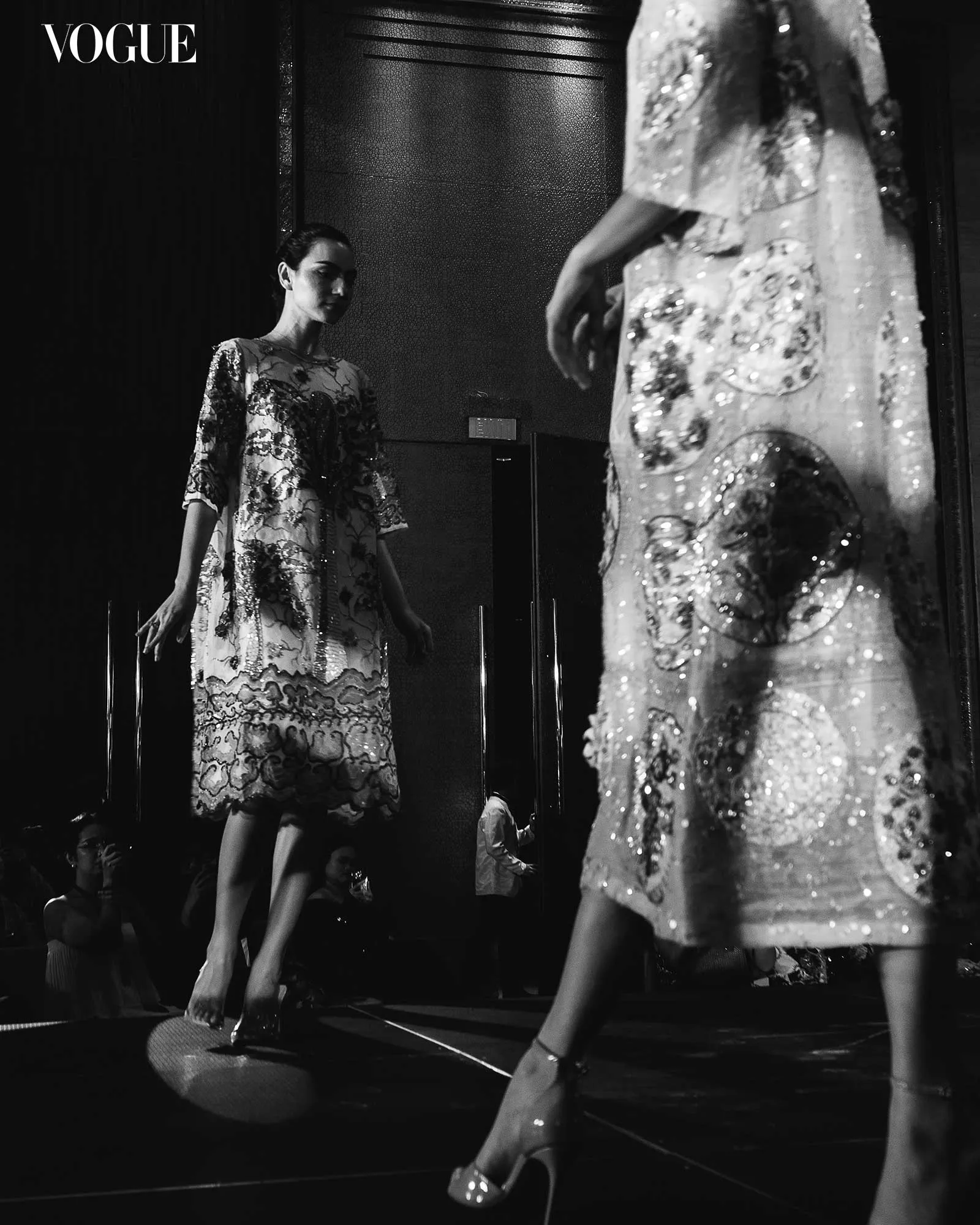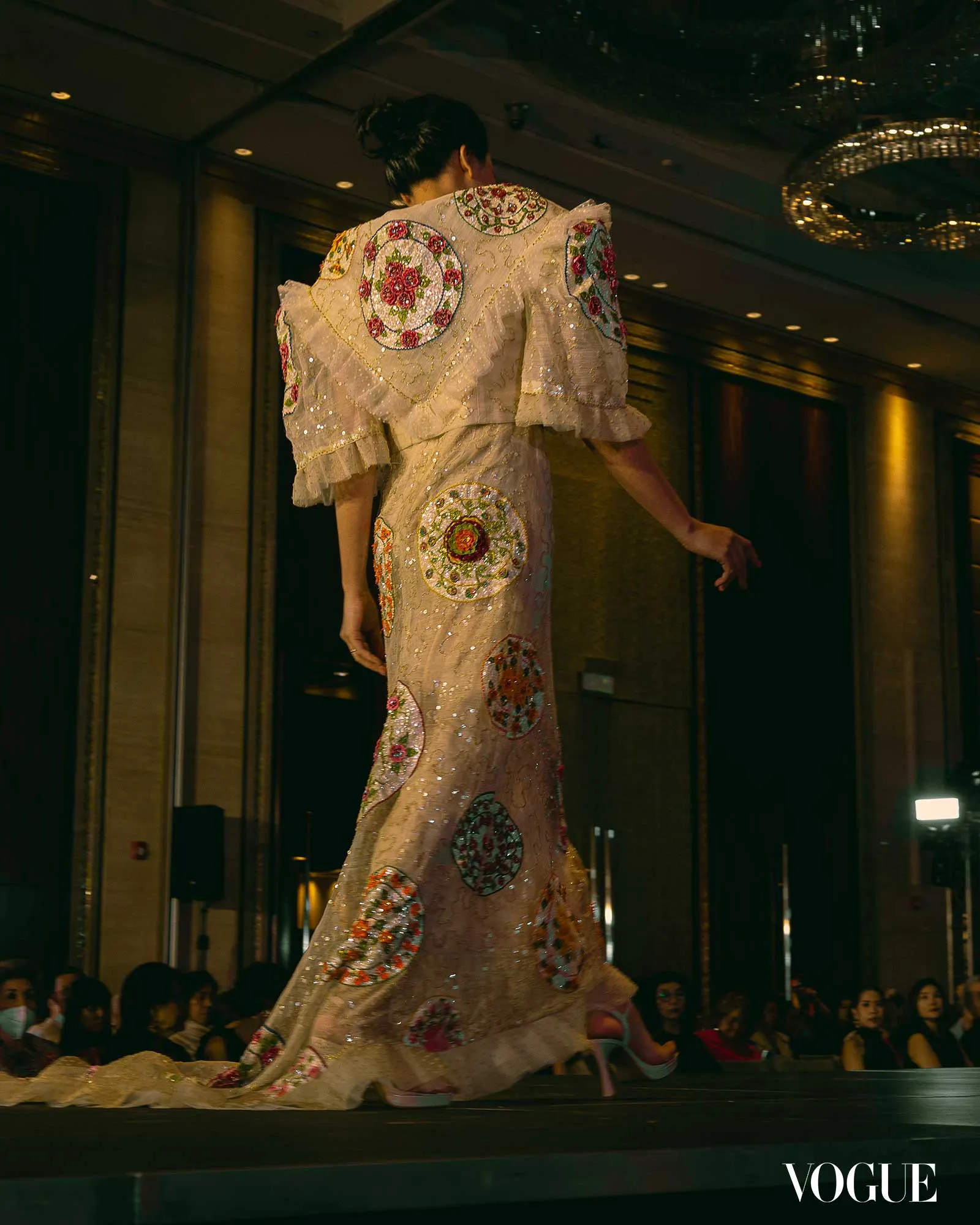The collection debuted in the ballroom of the Grand Hyatt Manila, where Tesoro unveiled a see-now-buy-now offering designed for the full rhythm of Filipino life, from the ease of home to the formality of social evenings. Shirts and duster dresses in patchwork brought together color and comfort, while Maria Clara gowns emerged as sculptural meditations on tradition. Hand-painted kimonos and barongs exuded a carefree spirit, unfazed by market data or the churn of global trends.