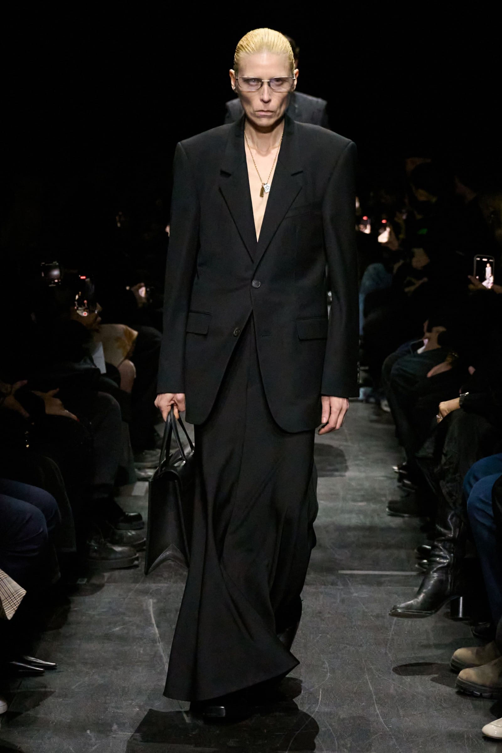 Gucci rose to the top three of the most viewed shows of the fall 2025 season on Vogue Runway (more on exactly where it netted out tomorrow, when we reveal our top 10 list), and it did so without any creative director at all, which demonstrates the prodigiousness of its audience. But its revenue has fallen precipitously since 2022, the year that Alessandro Michele made his exit. Demna’s directive will be to get the numbers flowing in the opposite direction. That turnaround imperative is why so many people figured Hedi Slimane had the job in the bag: He has a track record at Saint Laurent and Celine (which looked not unlike a French version of Gucci when he left). His current free agent status made Slimane seem like a strong contender.