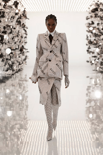 What makes Demna not such an obvious choice for Gucci is how he’s always led with his iconoclasm, first at Vetements, the independent brand he founded with his brother Guram Gvasalia, and then at Balenciaga, where, to paraphrase what he said backstage this season, he’s been putting chairs on heads and calling it wearable art. Then, of course, there are his powerfully thought-provoking runway shows: on climate change, on the cacophony of social media, on the threat of war.