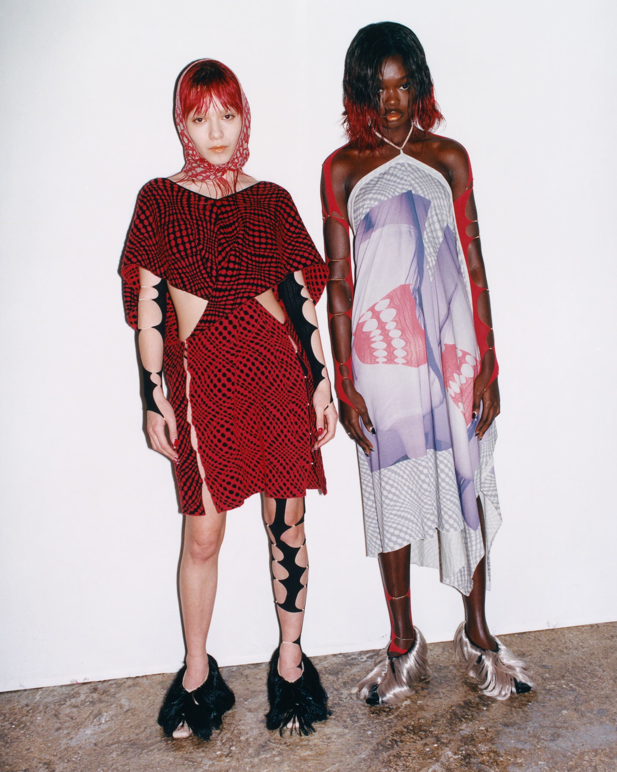 Rui Zhou treats knitwear as her own personal diary. An endless exploration of the interaction between the body and garments, the designer’s poetic fabric manipulation embraces all genders and body types. By artfully blending everyday garments with her own experiences, Zhou opens a line of communication between her and the wearer through her carefully-crafted pieces. By incorporating fragile and delicate elements to her pieces, the label highlights the sheer originality of one’s body as a canvas—a precious vehicle in understanding one’s deepest emotions and signature aesthetic.