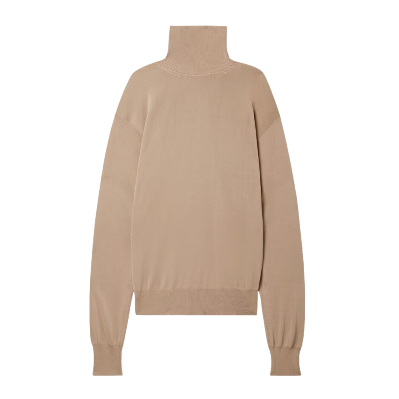 A paper-thin turtleneck is an age-old hack when it comes to dressing for fall when temperatures are still warm, particularly when worn with a pair of lightweight white denim. (Tibi’s jeans are just the trick.) Finish the ‘fit with a summer essential, a basket bag, and a pair of kitten-heel mules for a touch of fall—et voilà, a look that says summer and autumn all at once.