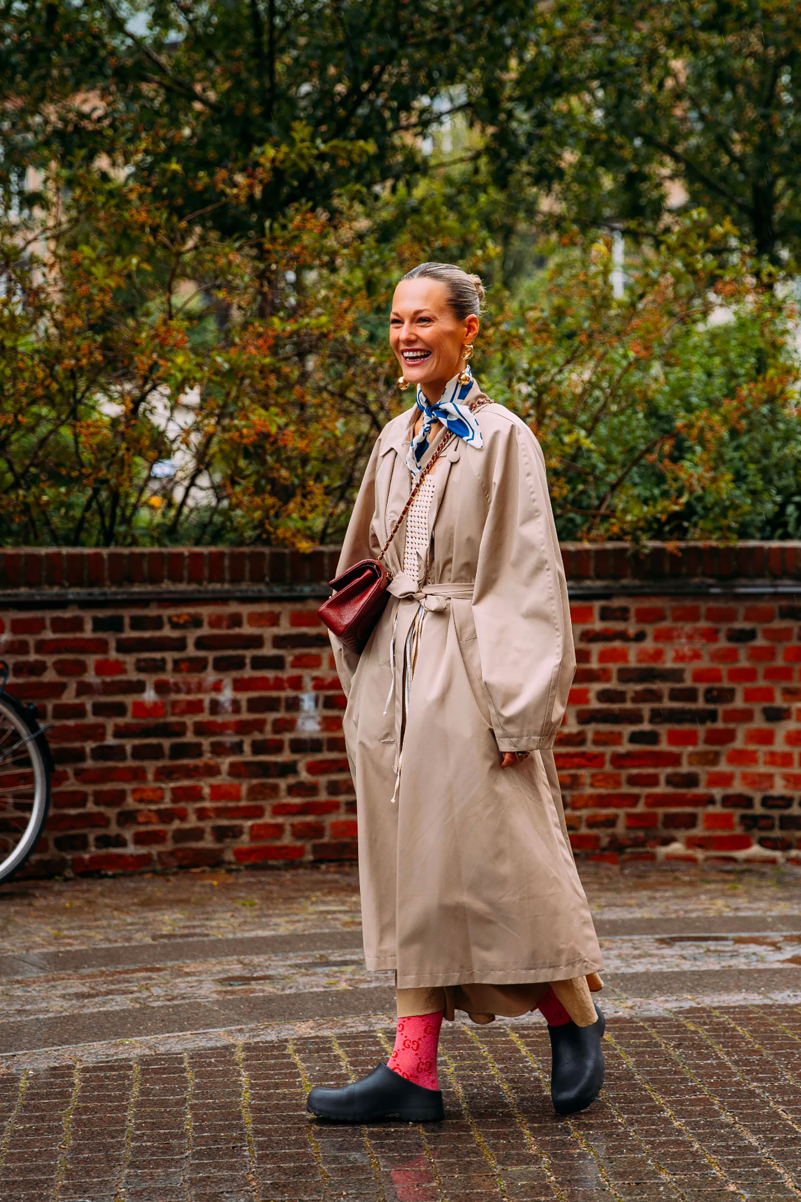 Among the bevy of wardrobe lessons one can take away from Copenhagen Fashion Week’s street style, one stands out: how to dress for two seasons at once. This year in Copenhagen five days of oscillating weather presented a set of outfit challenges. Finding ways to feel put together when it’s cold and wet or manufacturing an outfit that’s fit for a drizzly morning and afternoon of sun is no easy feat, but fashion-show-goers seemed to crack the code on dressing for a climate that contains multitudes.