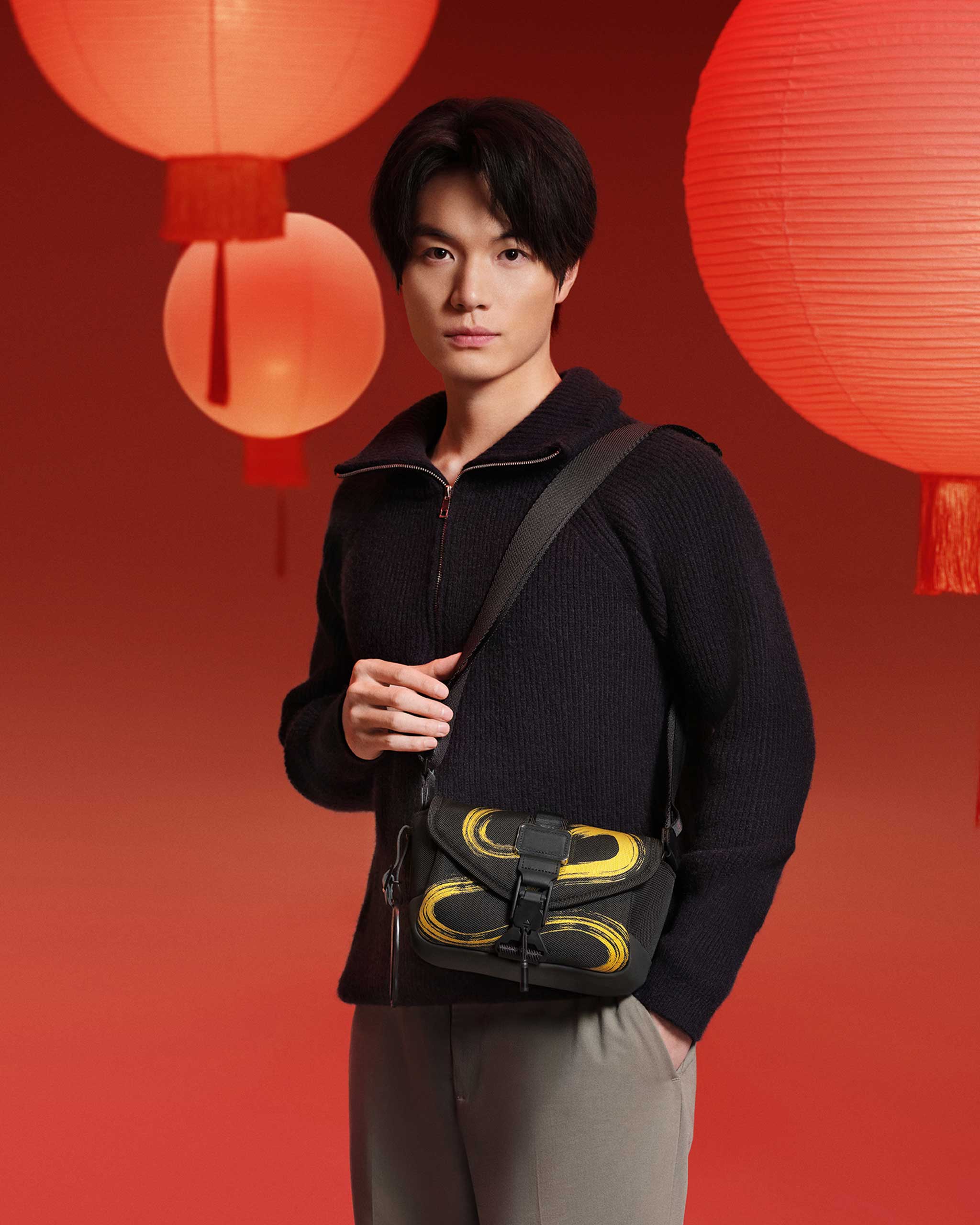 To celebrate the new wood snake zodiac in hyper-functional style; the brand’s Halsey and Navigation Backpacks, Compass Crossbody, and Platoon Sling are adorned with coiling gold brushstrokes.
