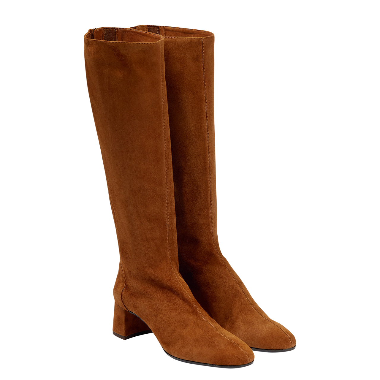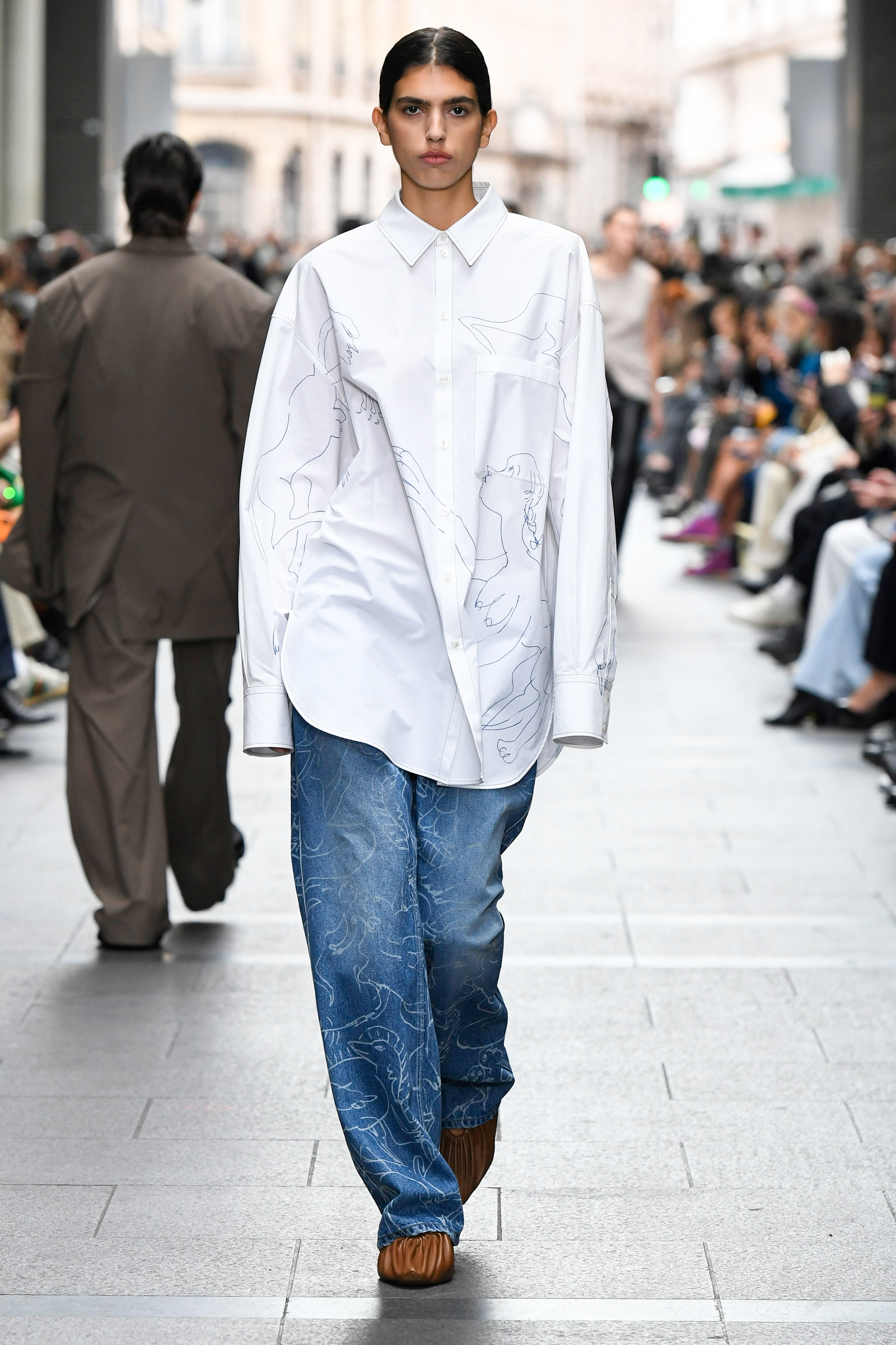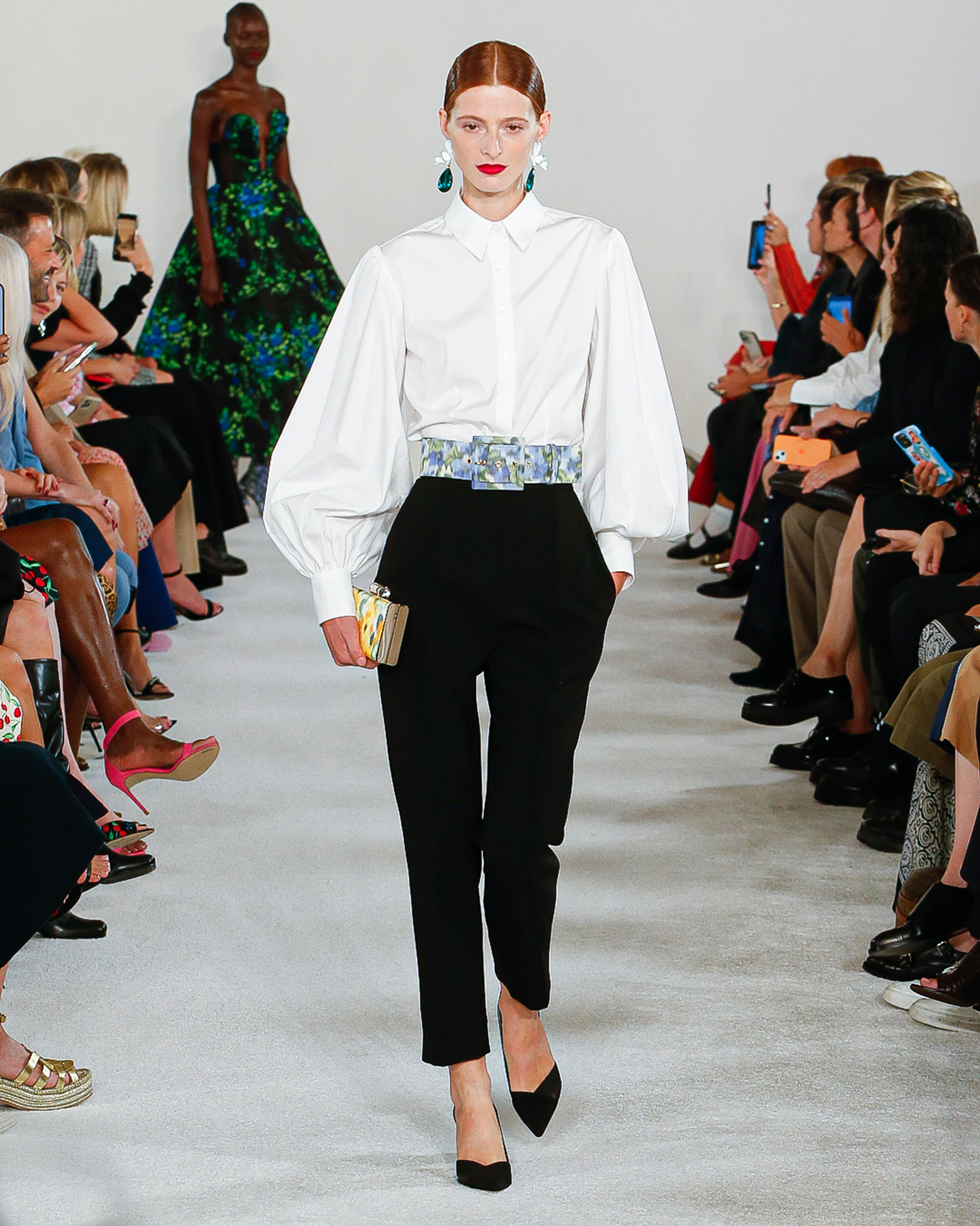 Refine your white button-down with tall suede boots, statement drop earrings, or a wide printed belt for a contemporary spring uniform.