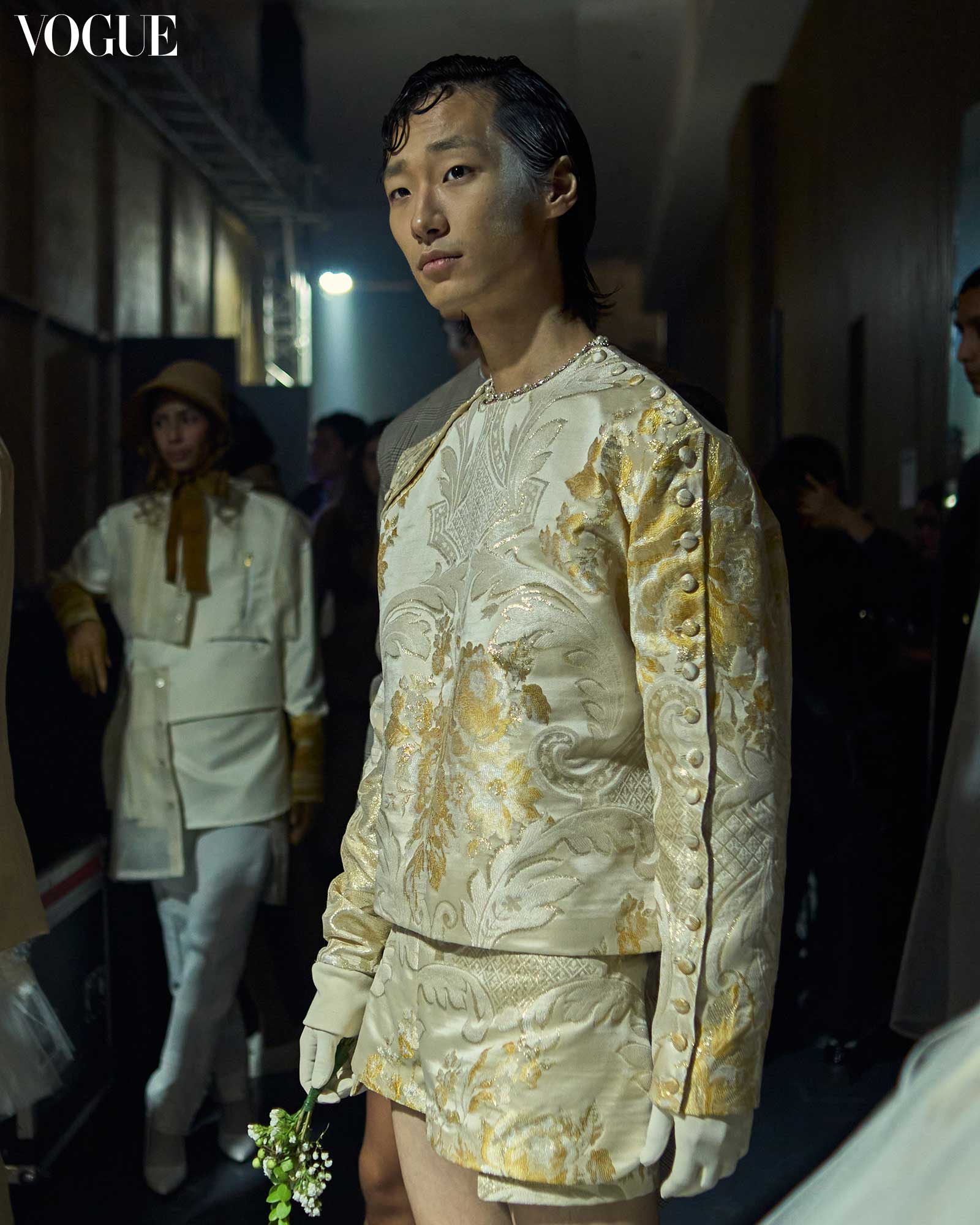 As the final ensembles began to walk the halls of the runway, florals became an increasingly recurring motif that paid homage to the collection’s title. What started from white roses taking the place of boutonnières had gradually evolved into bouquets sprouting from collars and beneath dresses, enveloping silhouettes in a garden of its own.