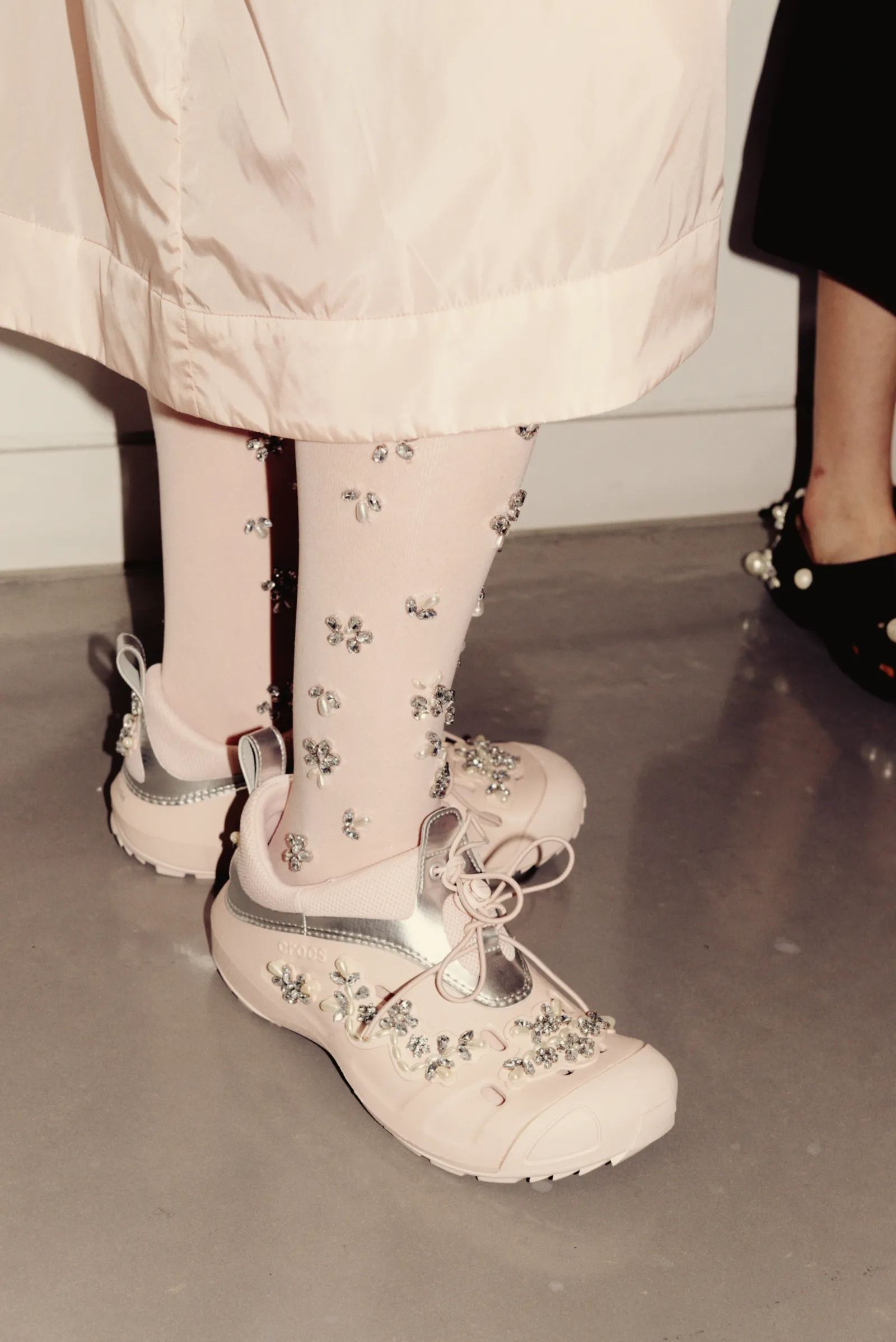 “We had Simone in our minds for a while,” Lucy Thornley, global vice president of trend, consumer, design & product at Crocs, who reached out to the designer early last year, tells British Vogue. “Looking at her work, we felt sure we could create something unique, one-of-a-kind, yet wearable. Simone has such a strong identity and is clearly willing to take some risks with her work – that resonated with our team. We felt her signature blend of femininity and utilitarian forms would perfectly align with our bold DNA.”
