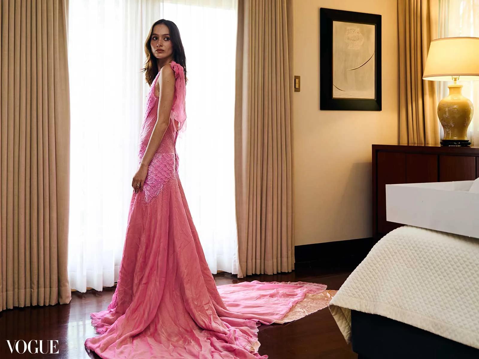 For one of Siobhan’s evening looks, the couple commissioned Paris-based and Manila-raised designer Jude Macasinag to create a gown. “I was deep into personal research about Madeleine Vionnet’s work when Siobhan asked me to make her a dress,” he said. “I was looking for something that lived in the liminal space between classism and contemporaneity.”