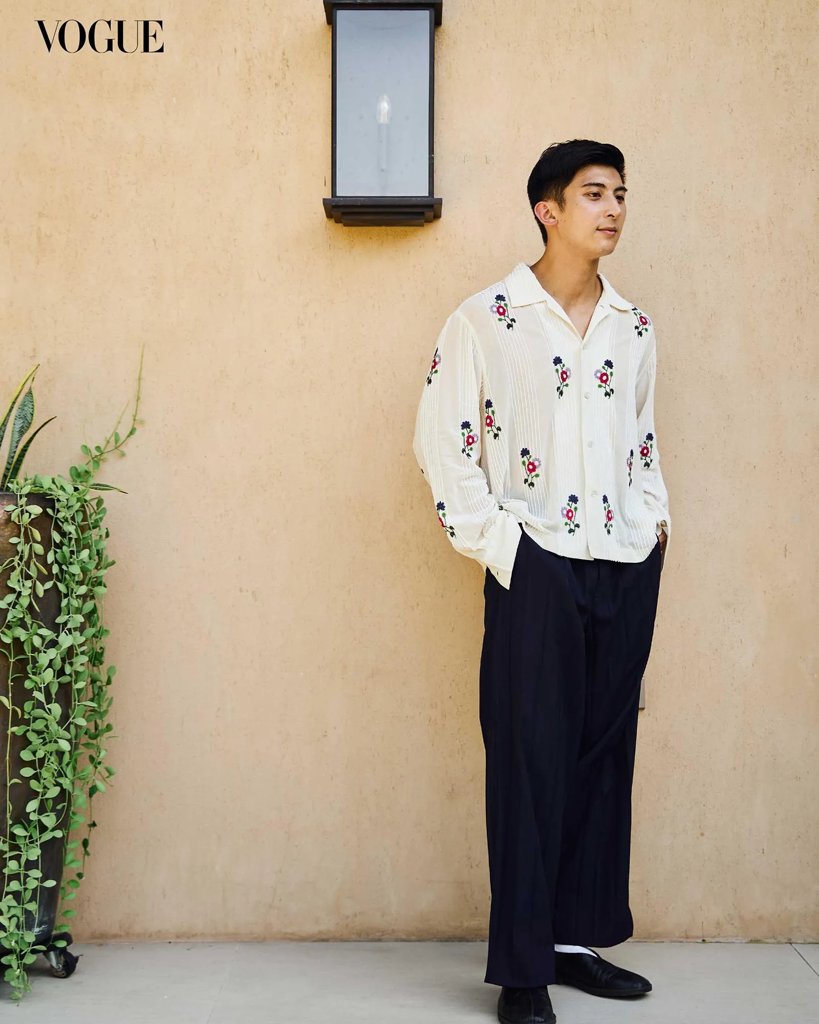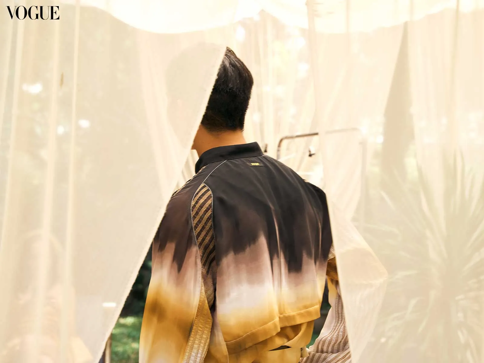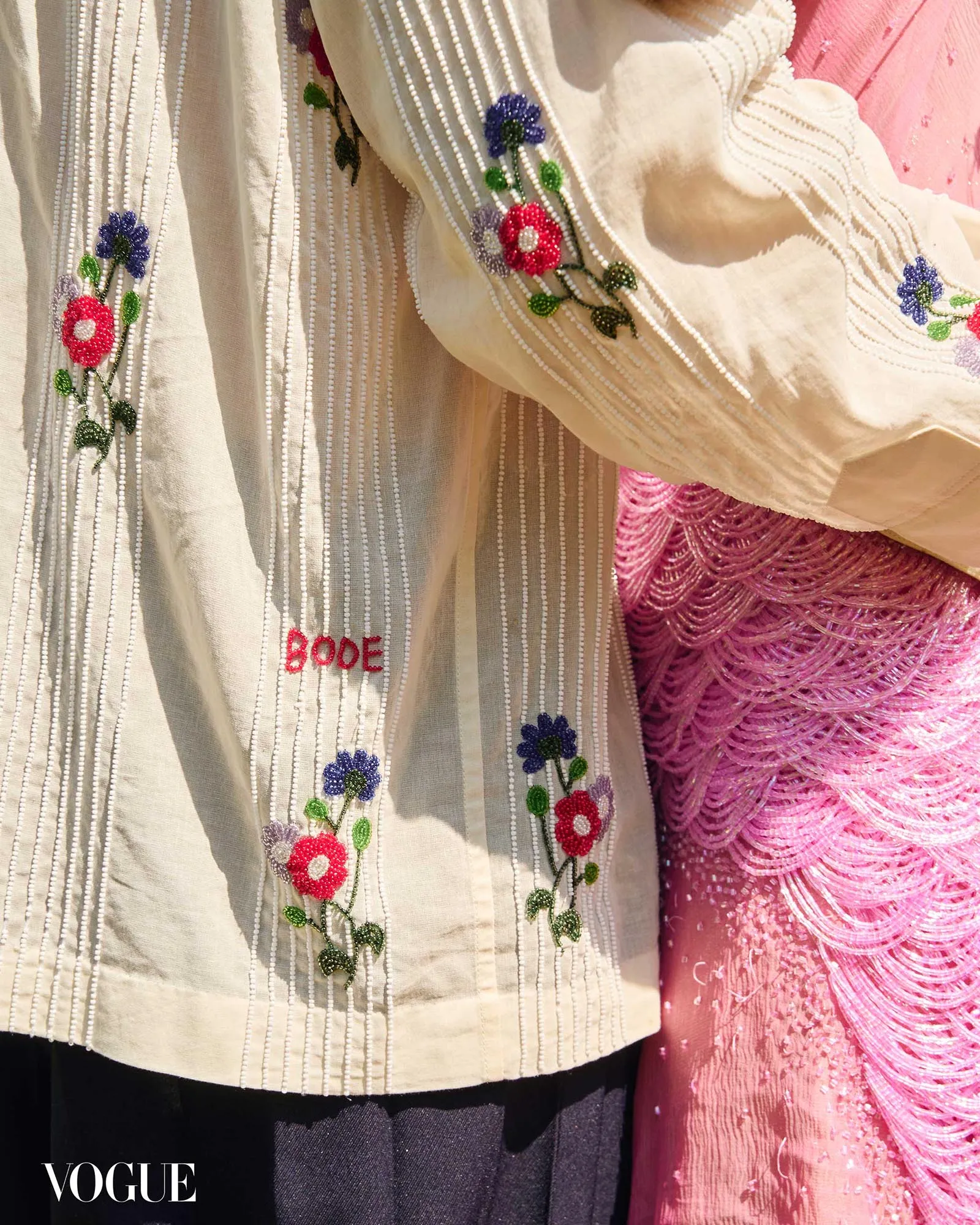 Collaborative fittings followed, otherwise known as “jam sessions,” where they “played around with the proportions, deciding which textiles would go on whom, and how much of the dyed or embroidered sections we’d use. I thrive in that kind of dialogue…the integration felt natural.”