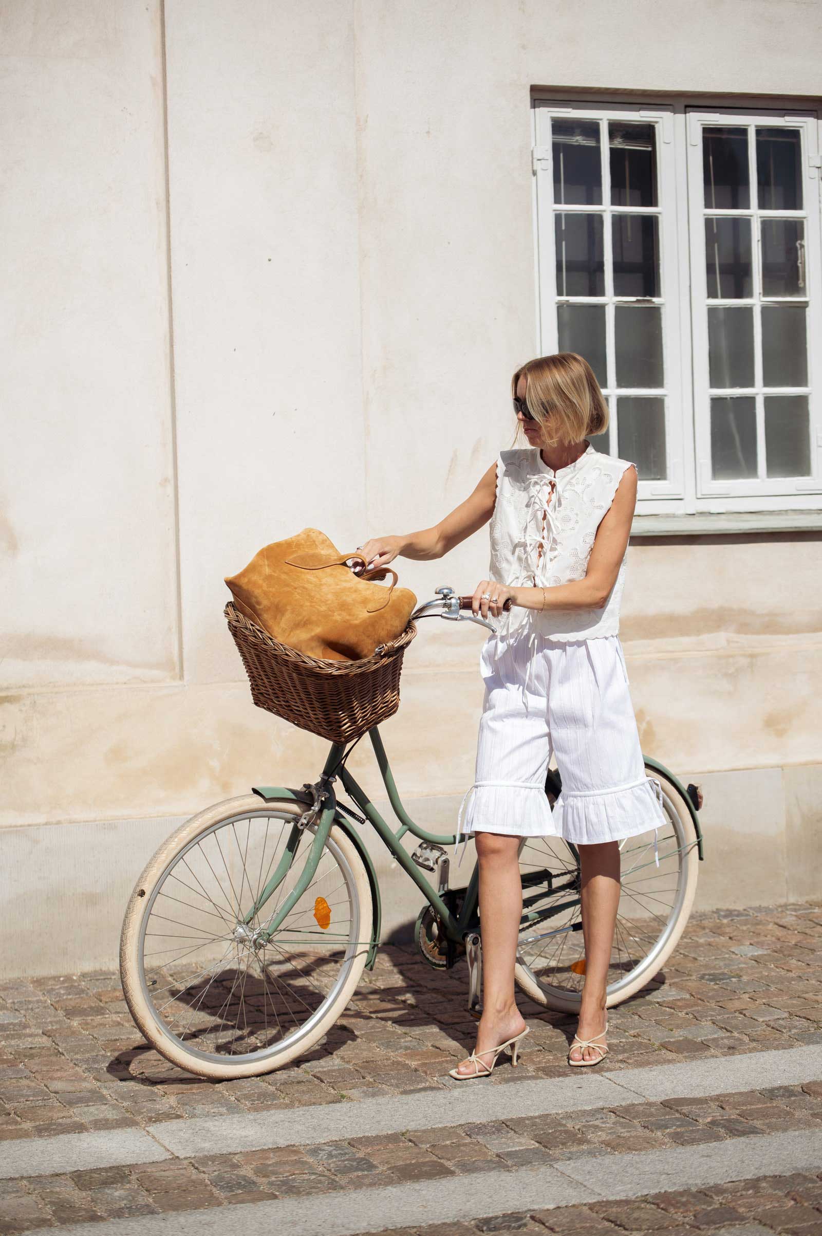 Copenhagen Fashion Week is now a powerful player on the international style stage and is often regarded as the “fifth” fashion week city, along with New York, London, Milan and Paris. It is known for its stance on sustainability and roster of playful, contemporary brands, like Ganni and Saks Potts, however the street-style scene has become an important part of its power. The Copenhagen “look” circa 2018 was all about a colourful, printed dress (think Ganni gingham or Stine Goya florals) grounded with ugly, practical trainers or Havaianas in paintbox brights. After all, this is a city where guests pull in at shows on bicycles and electric scooters.