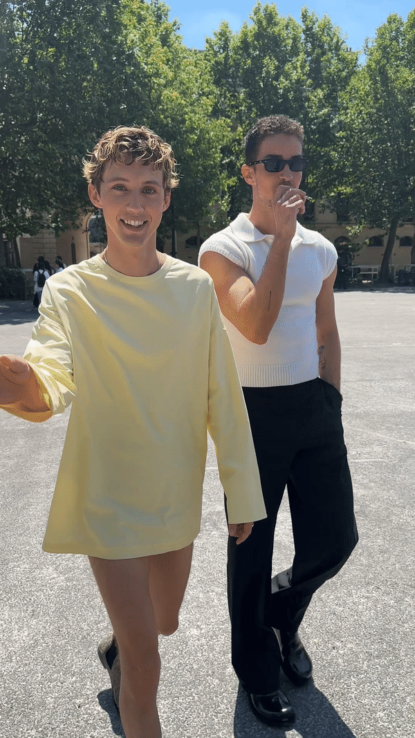 Yes, it was a hot boy summer at men’s fashion week. Along with short-shorts, the list of essentials includes knit tanks to show off your arms, and multi-purpose bandanas, especially if you find yourself attending shows with an injured arm but still need to make a fashion statement.