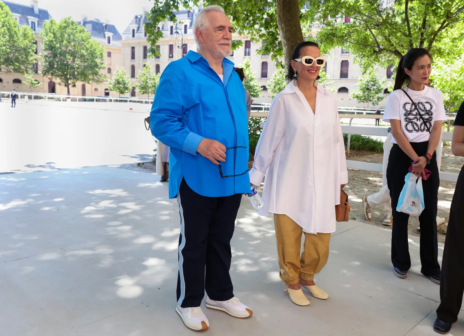 Logan Roy may have been the king of quiet luxury; but Brian Cox stands out in a pair of Loewe track pants with a polished button-up. Paris, spring 2024 menswear Photographed by Phil Oh